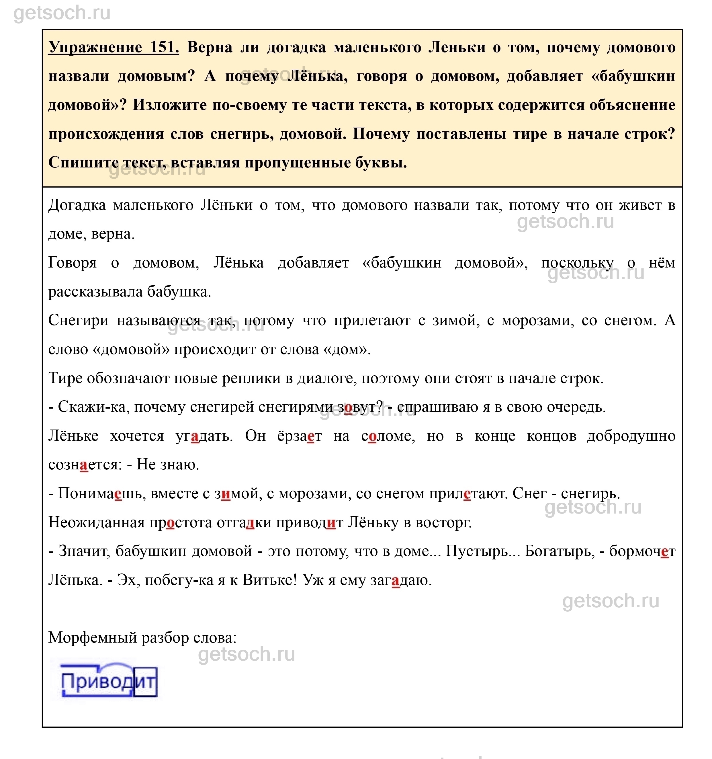 Рассмотрим ответы на Упражнение 151 из учебника по русскому языку для 5 класса Ладыженской