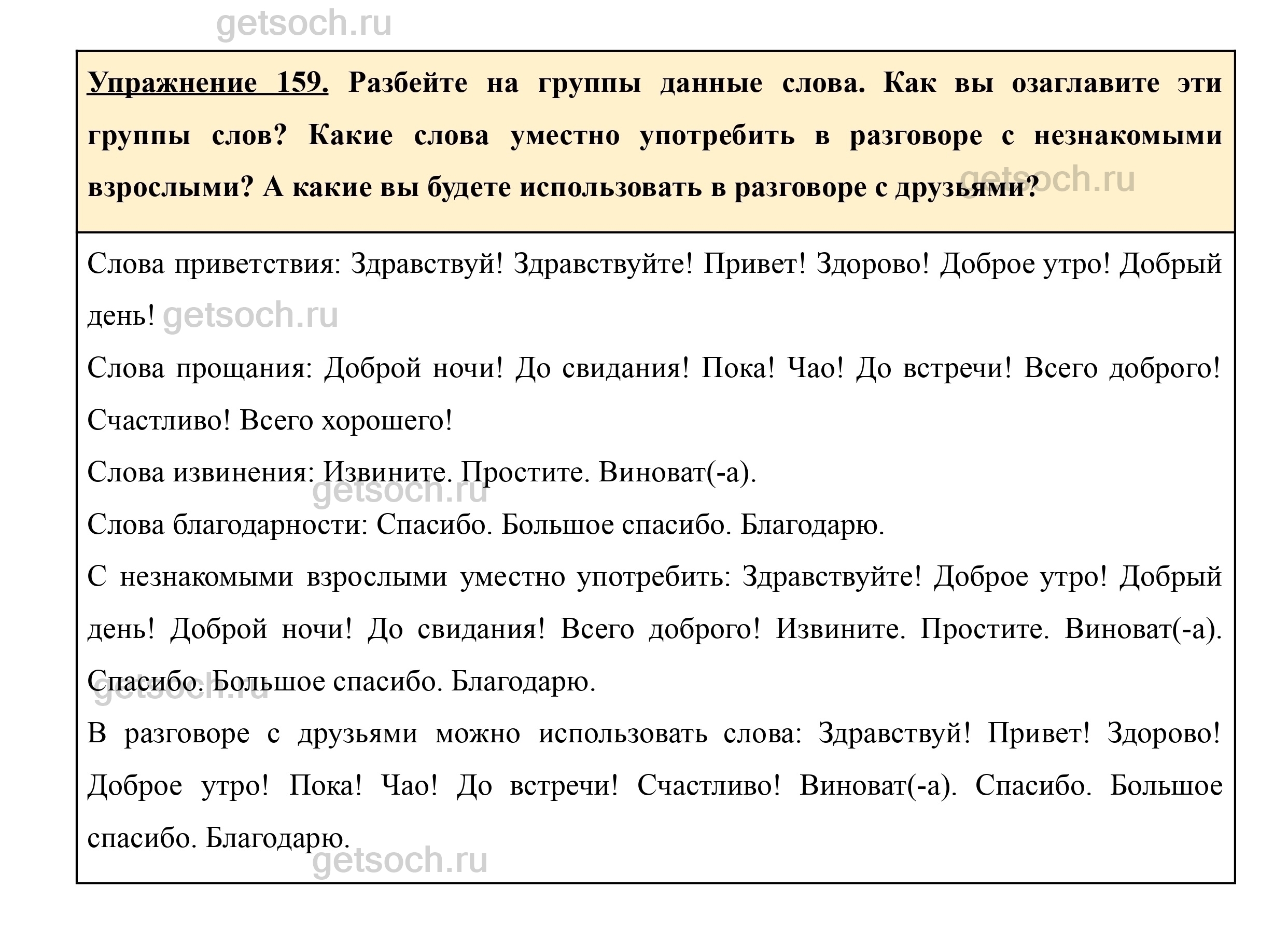 Рассмотрим ответы на Упражнение 159 из учебника по русскому языку для 5 класса Ладыженской