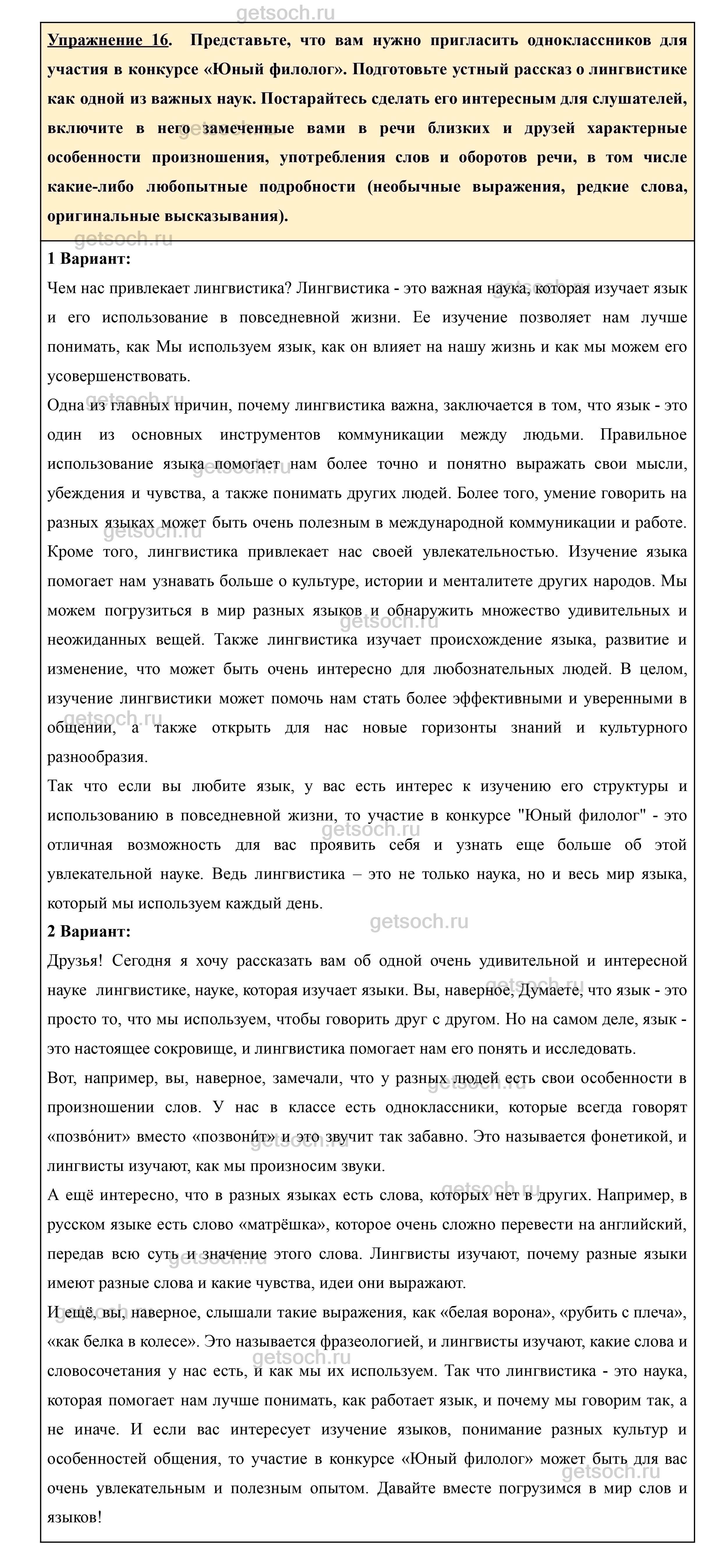 Рассмотрим ответы на Упражнение 16 из учебника по русскому языку для 5 класса Ладыженской