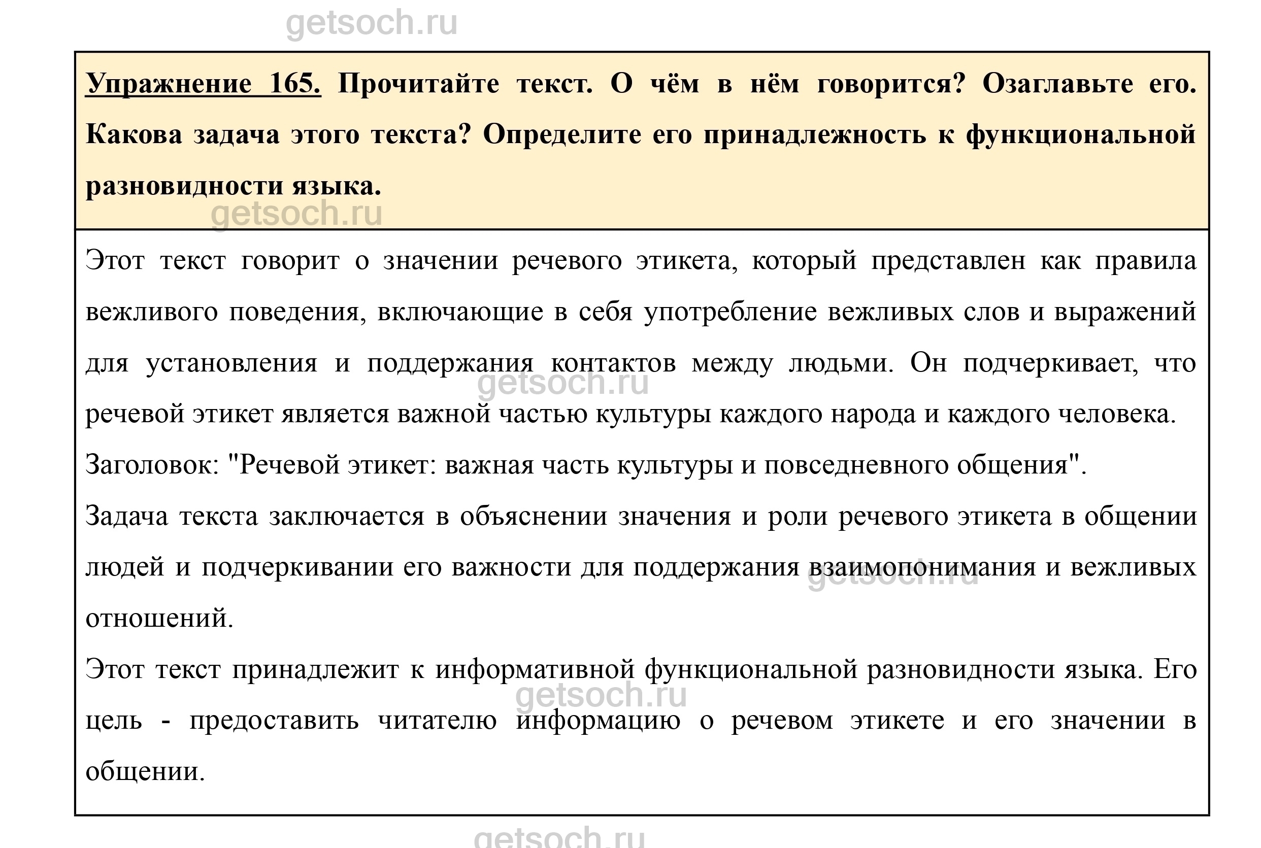 Рассмотрим ответы на Упражнение 165 из учебника по русскому языку для 5 класса Ладыженской