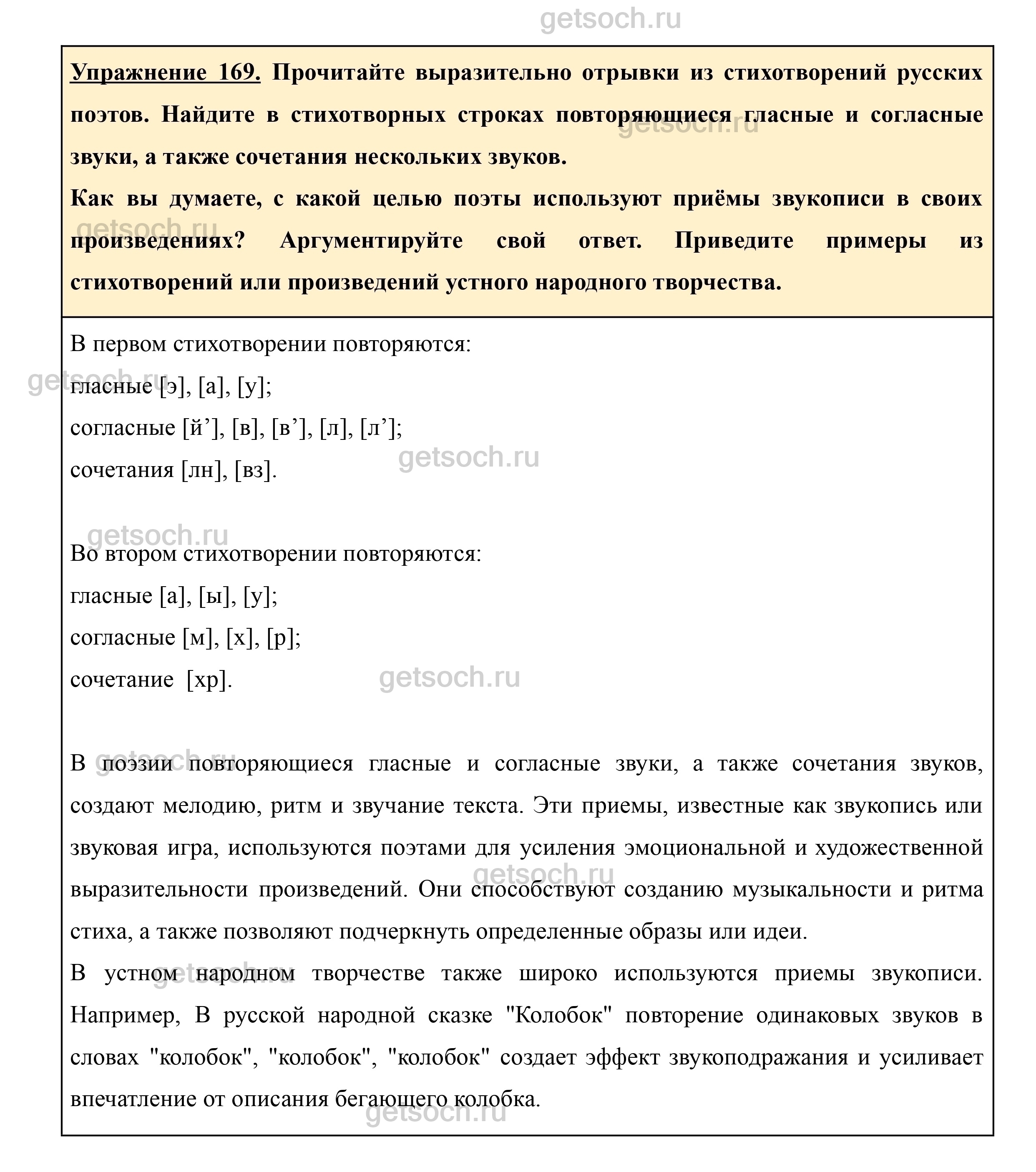 Рассмотрим ответы на Упражнение 169 из учебника по русскому языку для 5 класса Ладыженской
