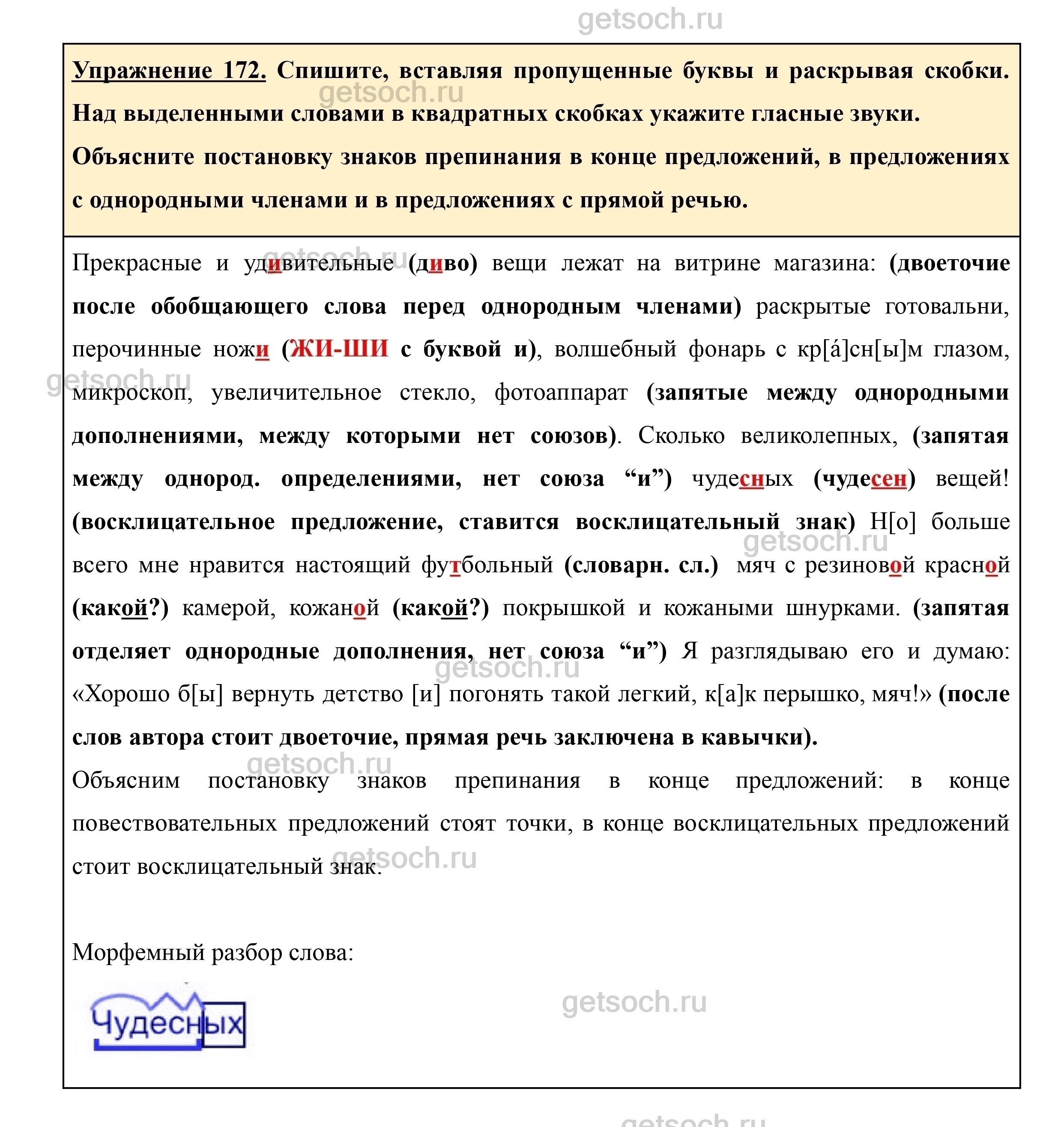 Рассмотрим ответы на Упражнение 172 из учебника по русскому языку для 5 класса Ладыженской