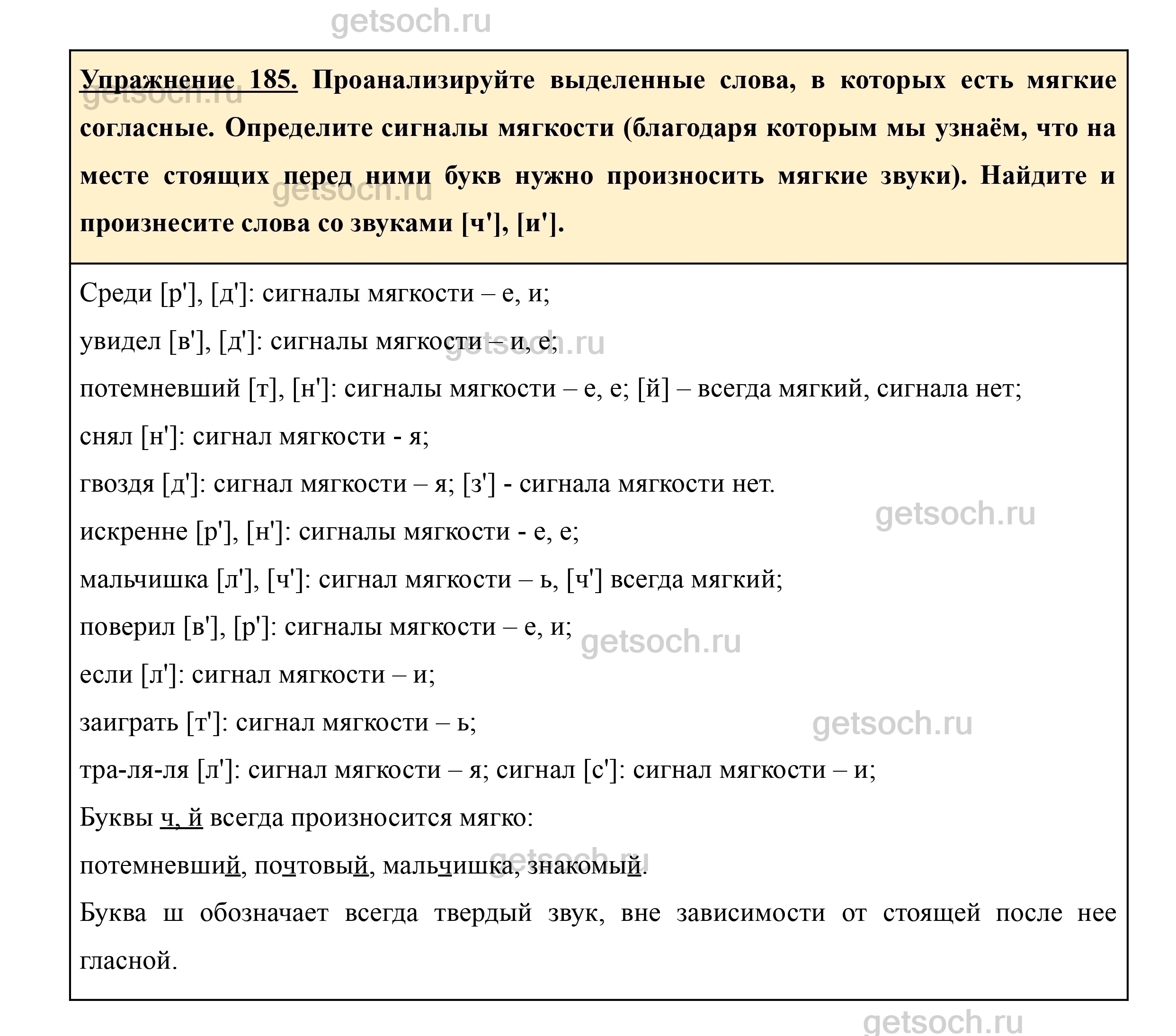 Рассмотрим ответы на Упражнение 185 из учебника по русскому языку для 5 класса Ладыженской