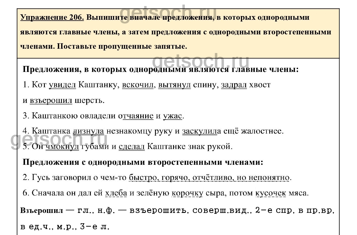 Выпишите вначале предложения, в которых однородными являются главные члены, а затем предложения с однородными второстепенными членами. Поставьте пропущенные запятые. 1. Кот увидел Каштанку вскочил вытянул спину задрал хвост и вз(?)ерошил3 шерсть. 2. Гусь заговорил о чём-то быстро горячо отчётливо но непонятно. 3. Каштанкою овладели отчаяние и ужас. 4. Каштанка лизнула незнакомцу руку и заскулила ещё жалостнее. 5. Он чмокнул губами и сделал Каштанке знак рукой. 6. Сначала он дал ей хлеба и зелёную корочку сыра, потом кусочек мяса.(А. Чехов)