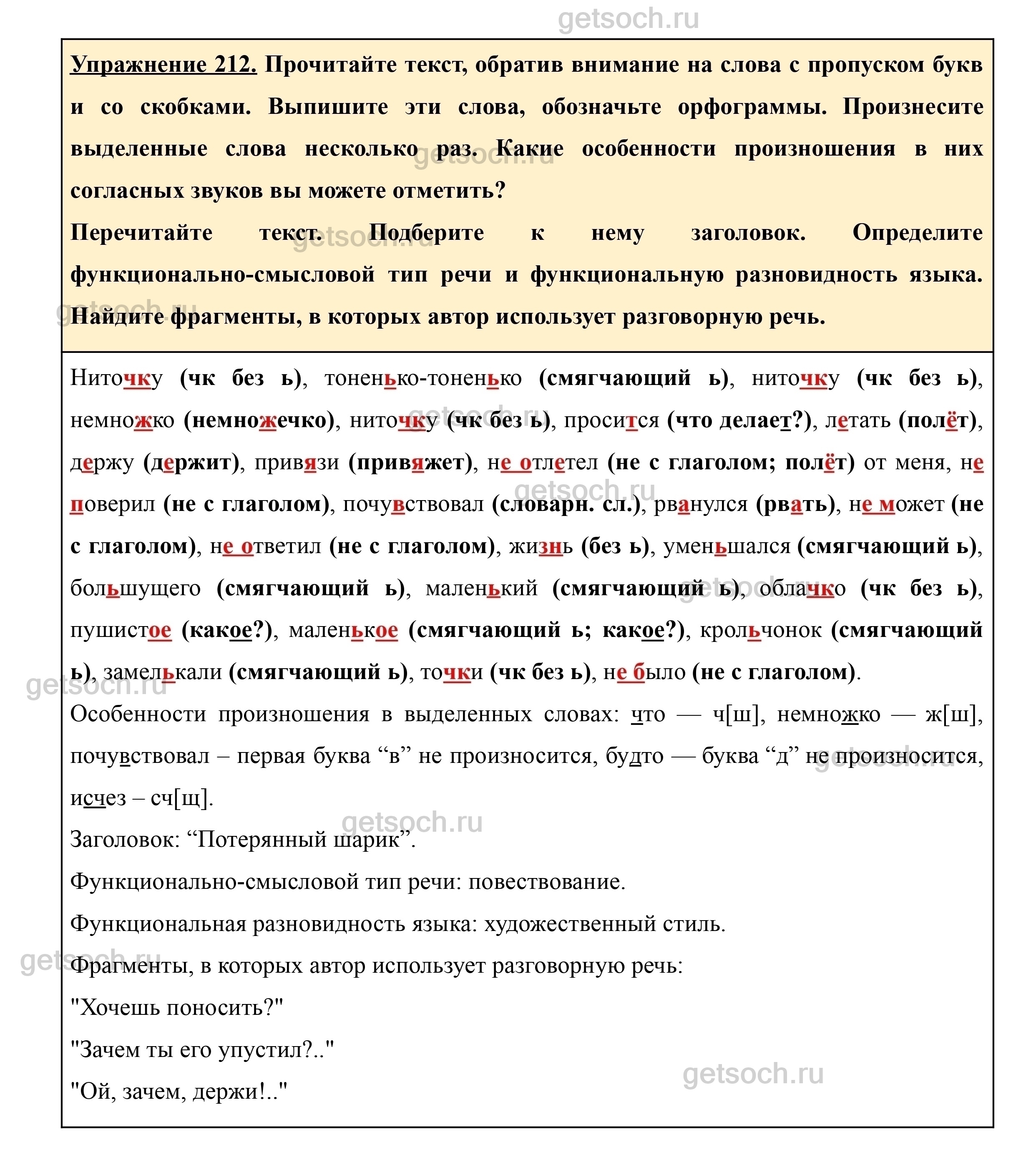 Рассмотрим ответы на Упражнение 212 из учебника по русскому языку для 5 класса Ладыженской