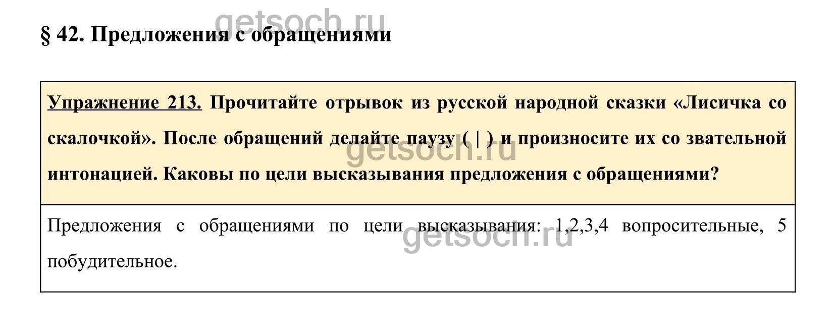 Прочитайте отрывок из русской народной сказки «Лисичка со скалочкой». После обращений делайте паузу ( | ) и произносите их со звательной интонацией. Каковы по цели высказывания предложения с обращениями? Лисица от собак бежала, бежала да под пенёк в норку и ушла. Залезла в нору, отдышалась и начала спрашивать: — Глазки, глазоньки, что вы делали? — Мы смотрели, чтобы собаки лисоньку не съели. — Ушки, ушки, | что вы делали? — Мы слушали, чтобы собаки лисоньку не скушали. — Ножки, ноженьки, | а вы что делали? — Мы бежали, чтобы собаки лисоньку не поймали. — А ты, хвостище, что делал? — Я по пням, по кустам цеплял да тебе бежать мешал. Рассердилась лиса на хвост и высунула его из норы. — Нате, собаки, ешьте мой хвост! Собаки ухватили лису за хвост и вытащили из норы.