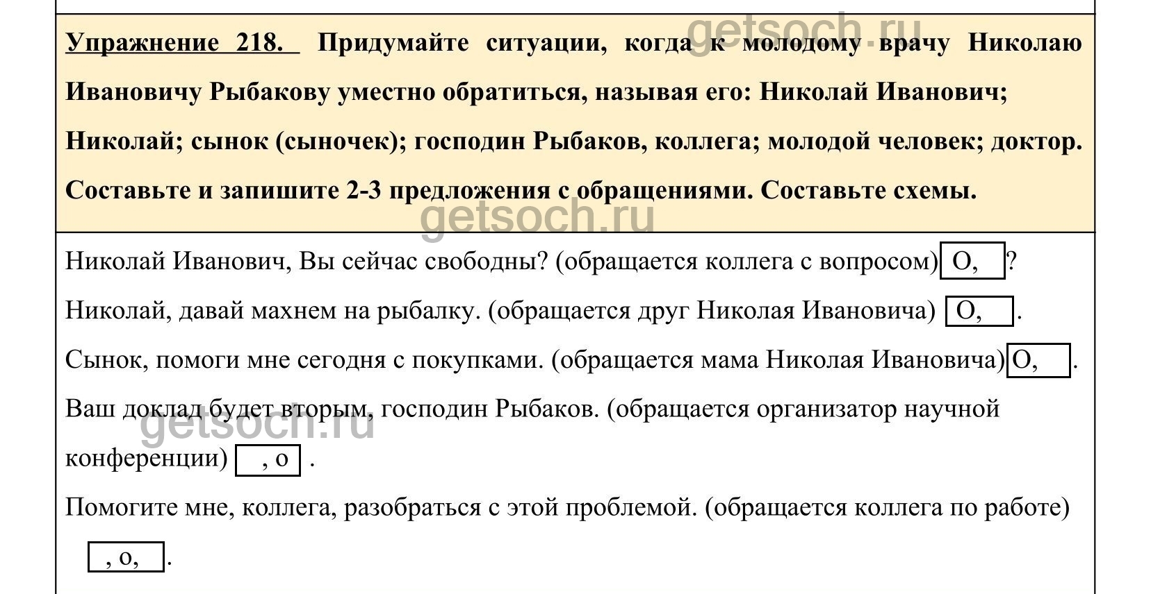 Рассмотрим ответы на Упражнение 218 из учебника по русскому языку для 5 класса Ладыженской