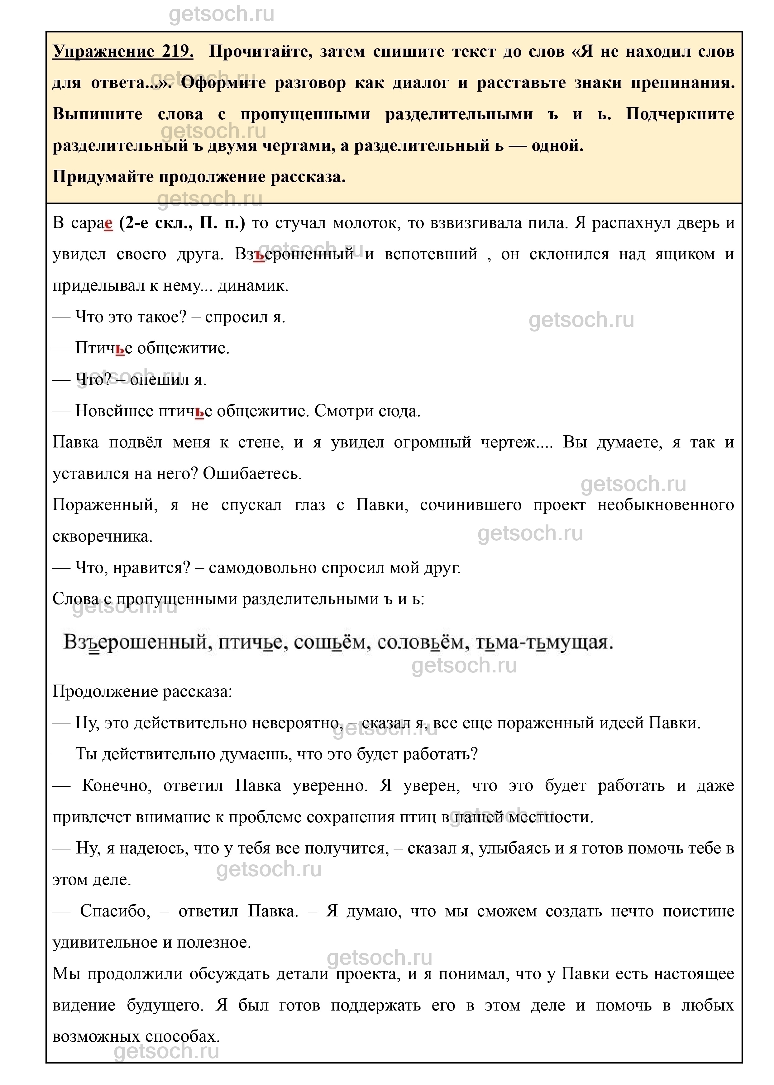Рассмотрим ответы на Упражнение 219 из учебника по русскому языку для 5 класса Ладыженской