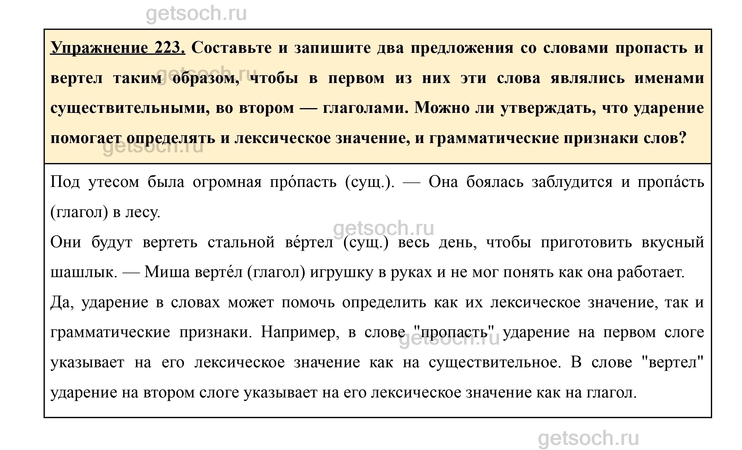 Рассмотрим ответы на Упражнение 223 из учебника по русскому языку для 5 класса Ладыженской