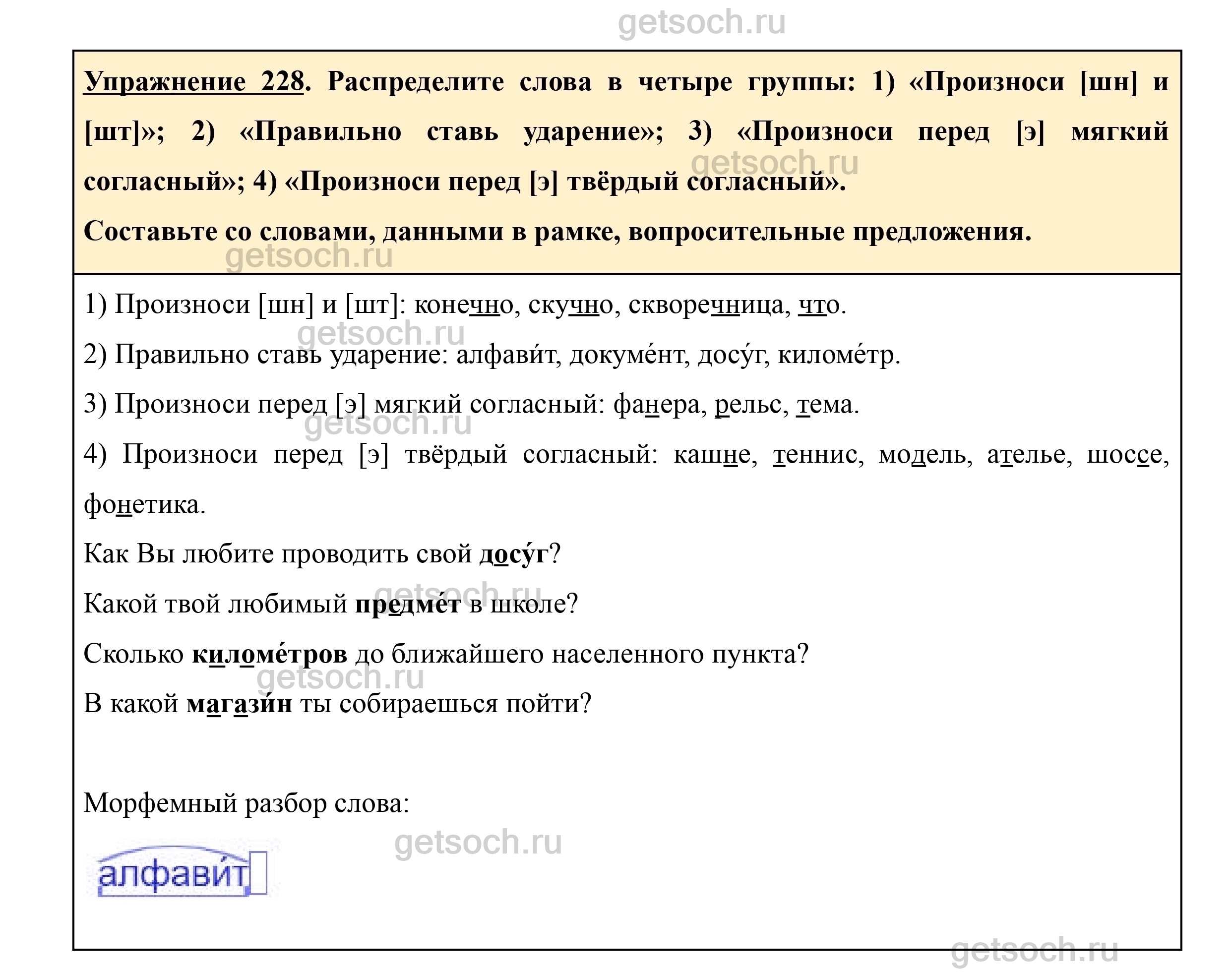 Рассмотрим ответы на Упражнение 228 из учебника по русскому языку для 5 класса Ладыженской