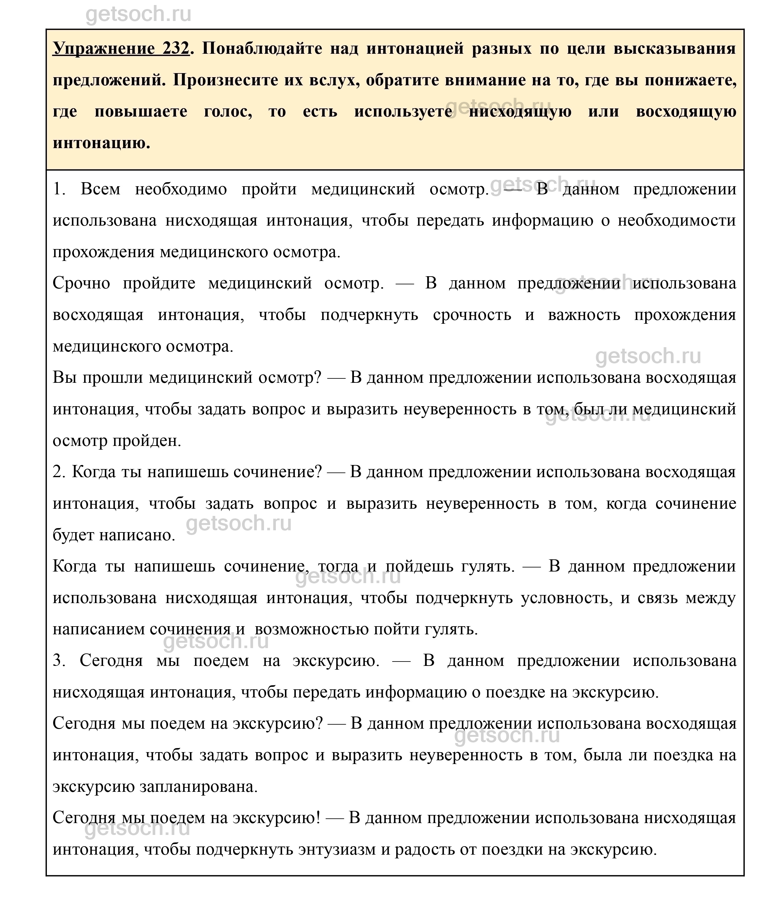 Рассмотрим ответы на Упражнение 232 из учебника по русскому языку для 5 класса Ладыженской