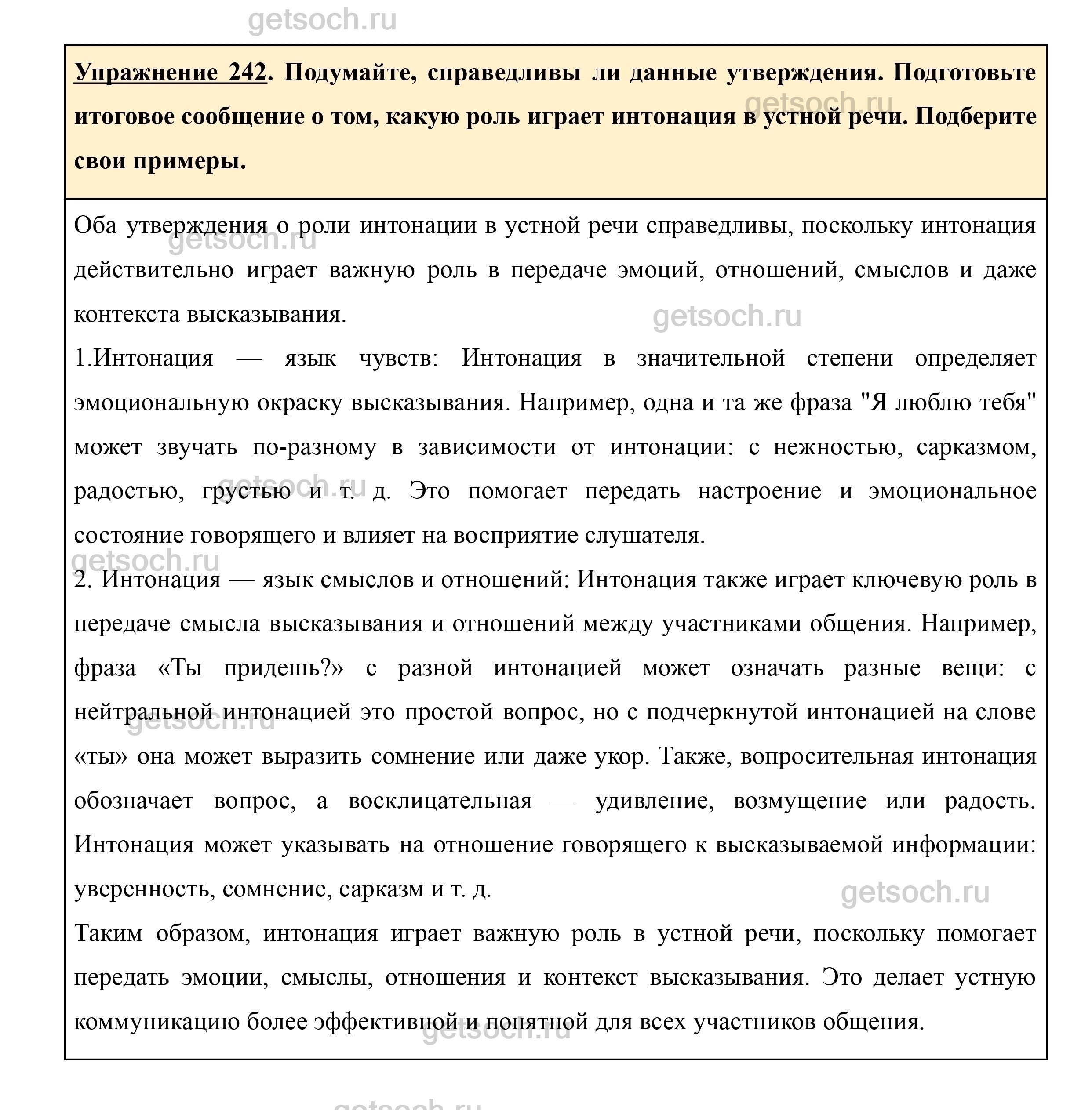 Рассмотрим ответы на Упражнение 242 из учебника по русскому языку для 5 класса Ладыженской