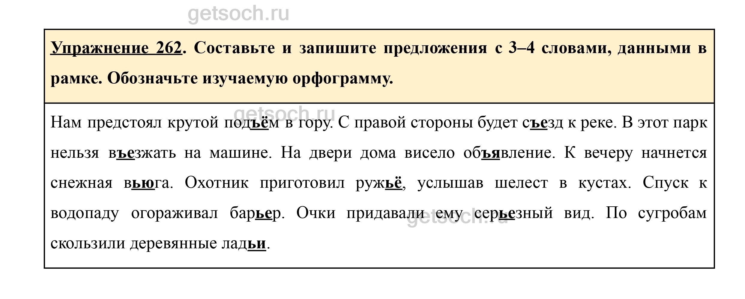 Рассмотрим ответы на Упражнение 262 из учебника по русскому языку для 5 класса Ладыженской