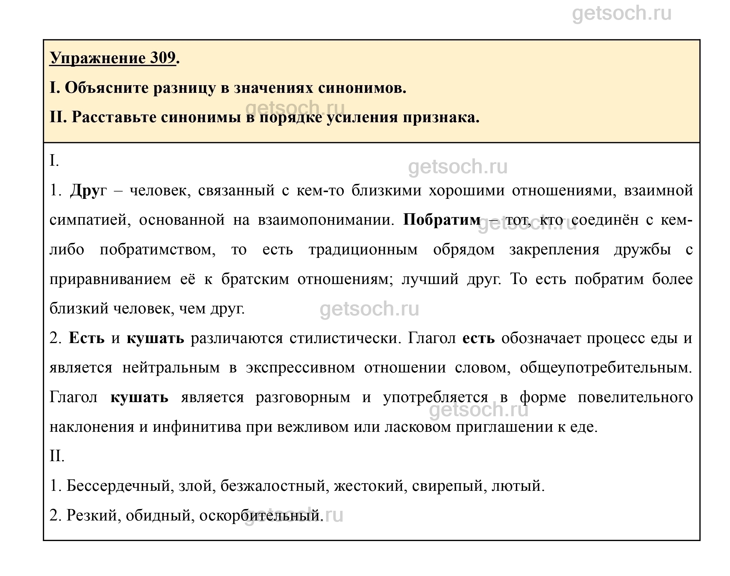 Рассмотрим ответы на Упражнение 309 из учебника по русскому языку для 5 класса Ладыженской