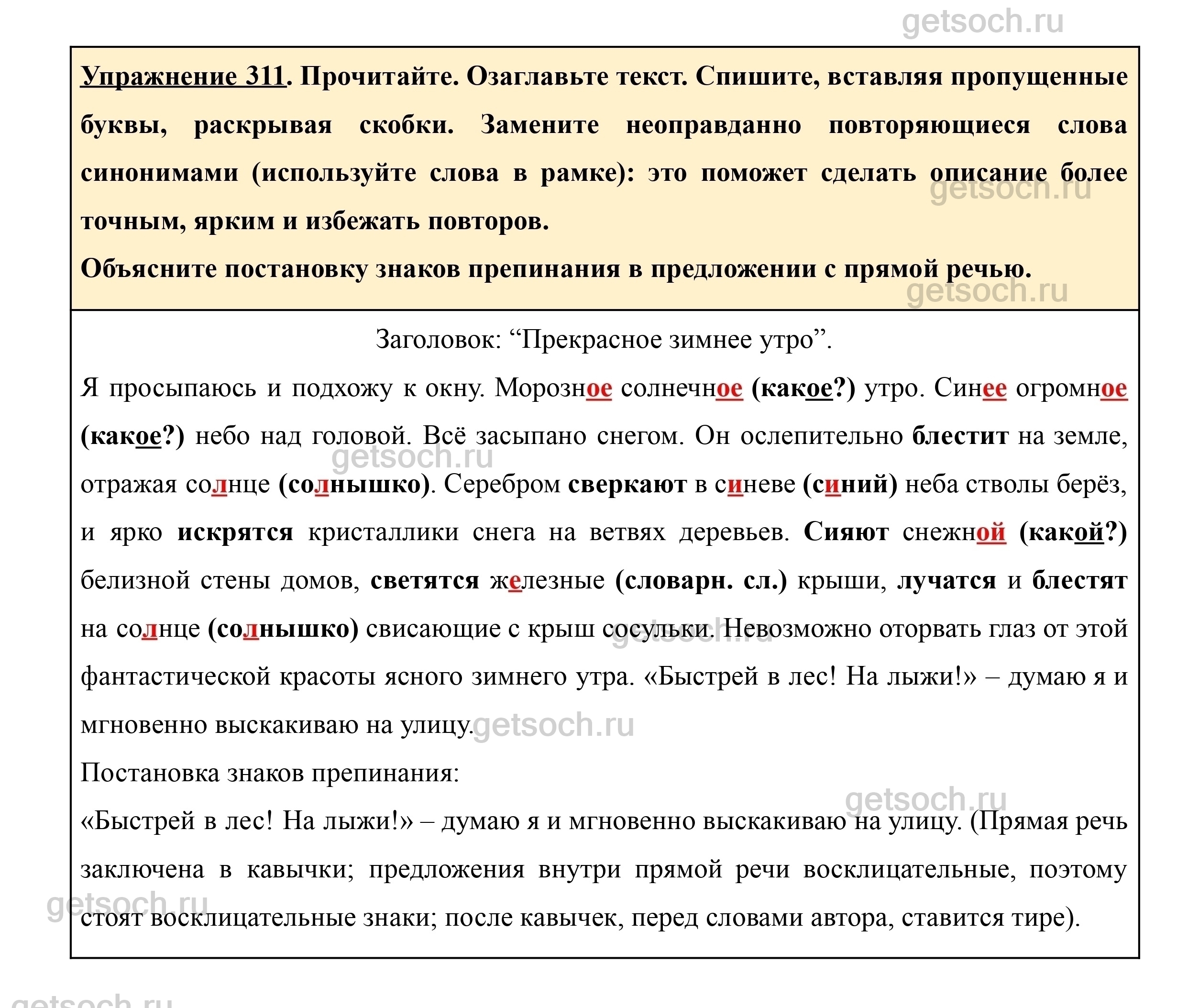Рассмотрим ответы на Упражнение 311 из учебника по русскому языку для 5 класса Ладыженской