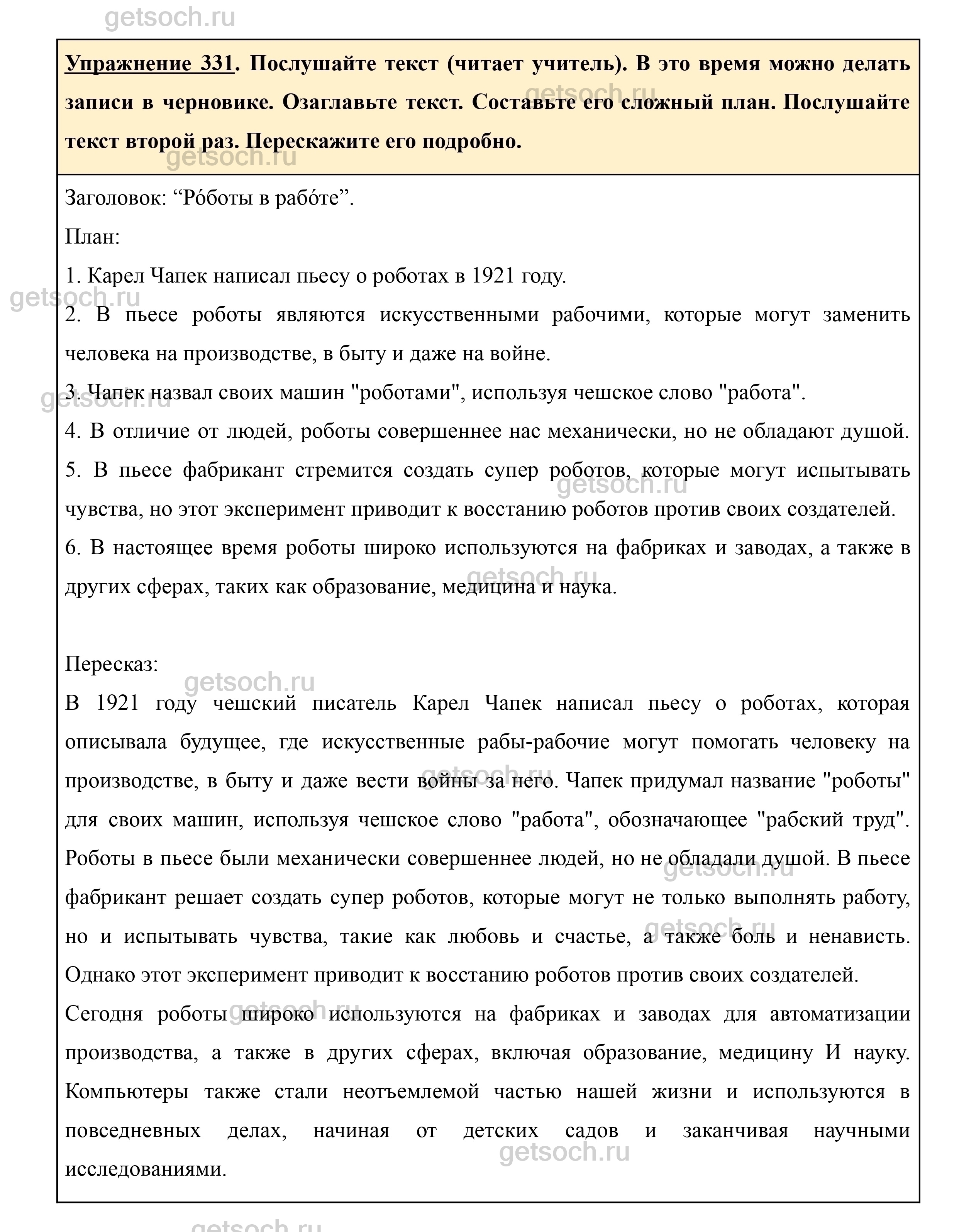 Рассмотрим ответы на Упражнение 331 из учебника по русскому языку для 5 класса Ладыженской