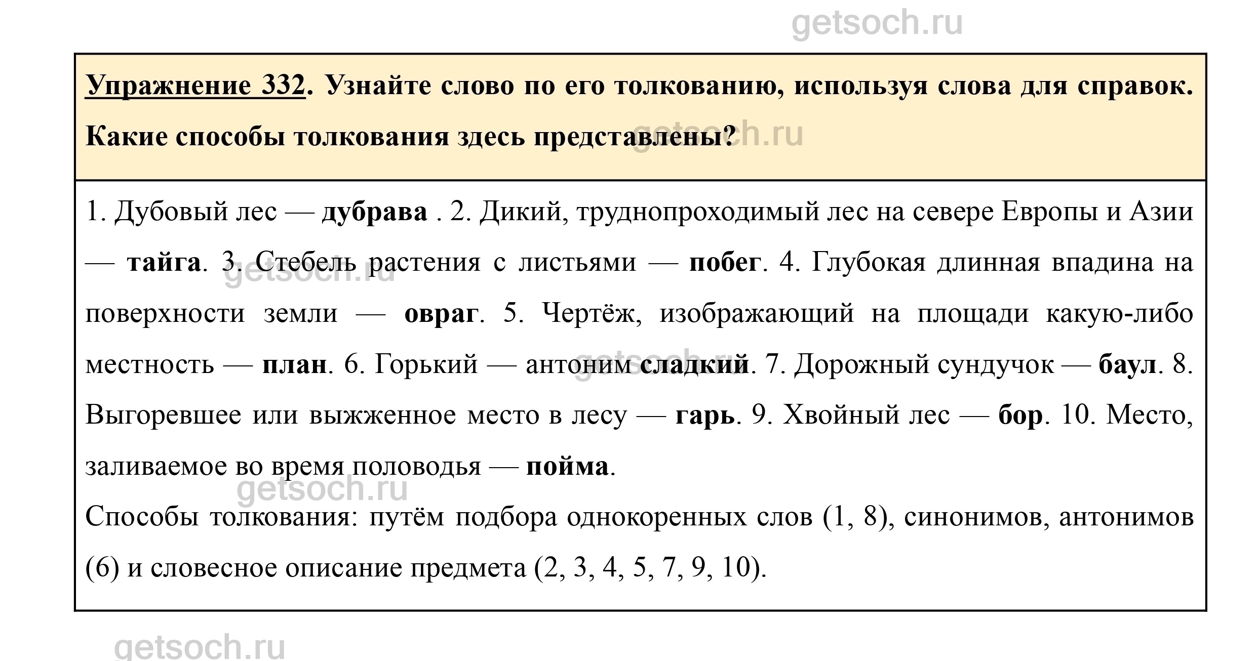Рассмотрим ответы на Упражнение 332 из учебника по русскому языку для 5 класса Ладыженской