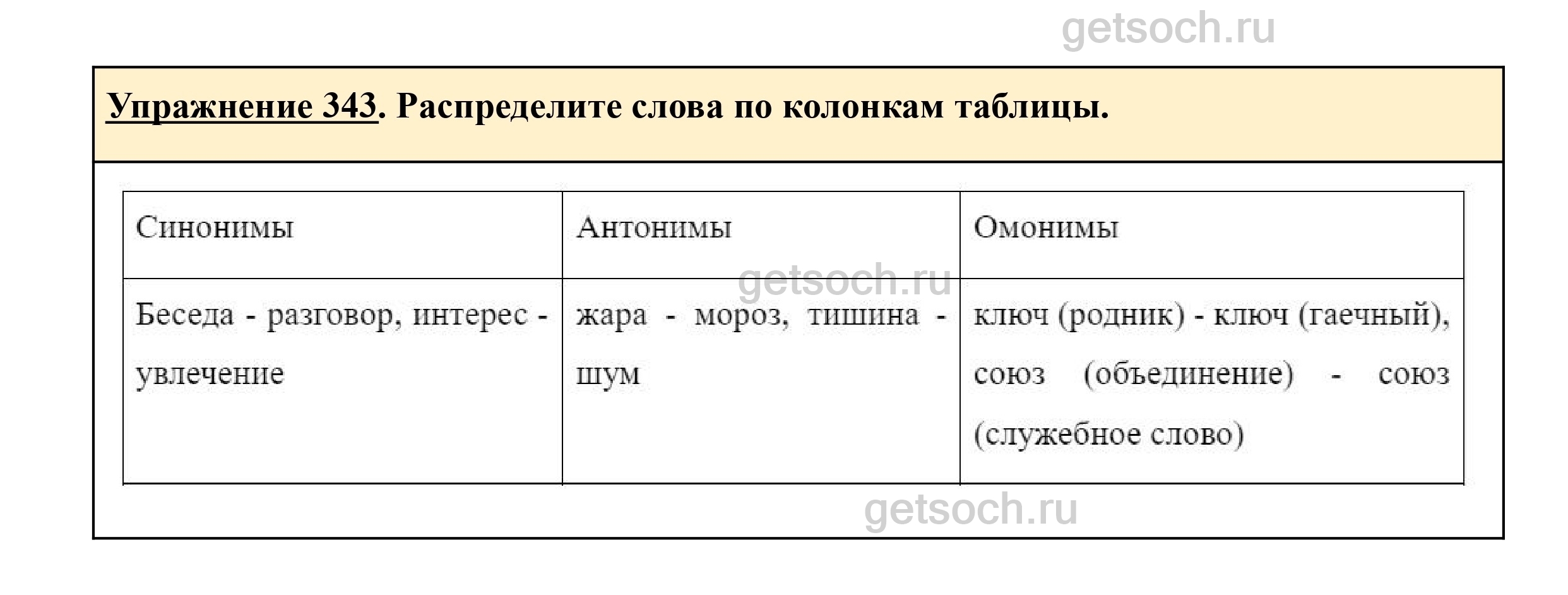 Рассмотрим ответы на Упражнение 343 из учебника по русскому языку для 5 класса Ладыженской