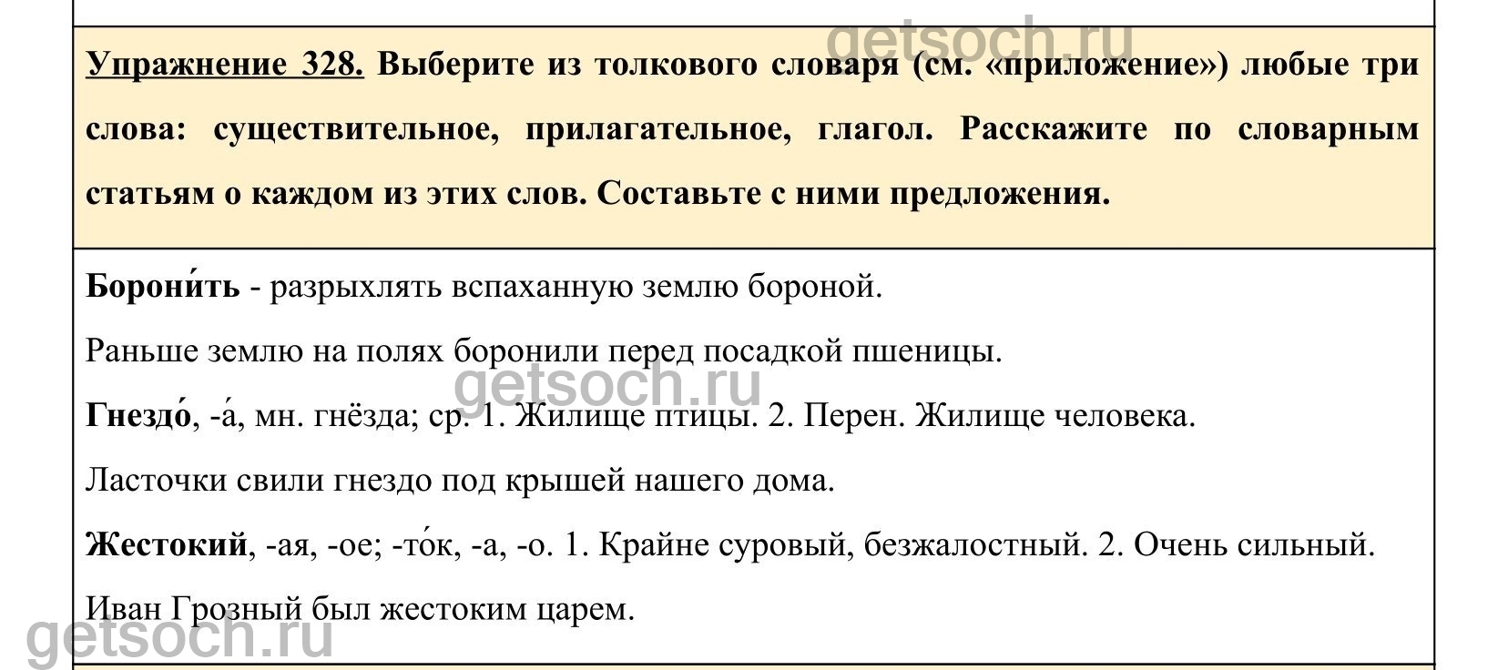 Выберите из толкового словаря (см. с. 208-220) любые три слова разных частей речи. Расскажите по словарным статьям о каждом из этих слов. Составьте с ними предложения.