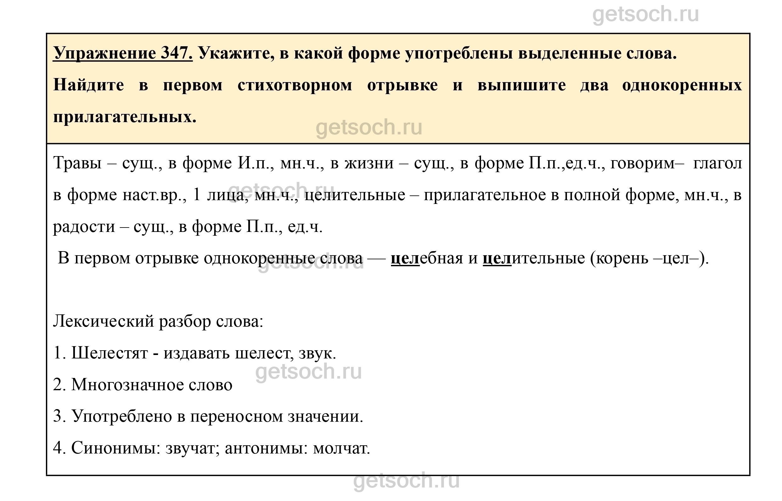 Рассмотрим ответы на Упражнение 347 из учебника по русскому языку для 5 класса Ладыженской
