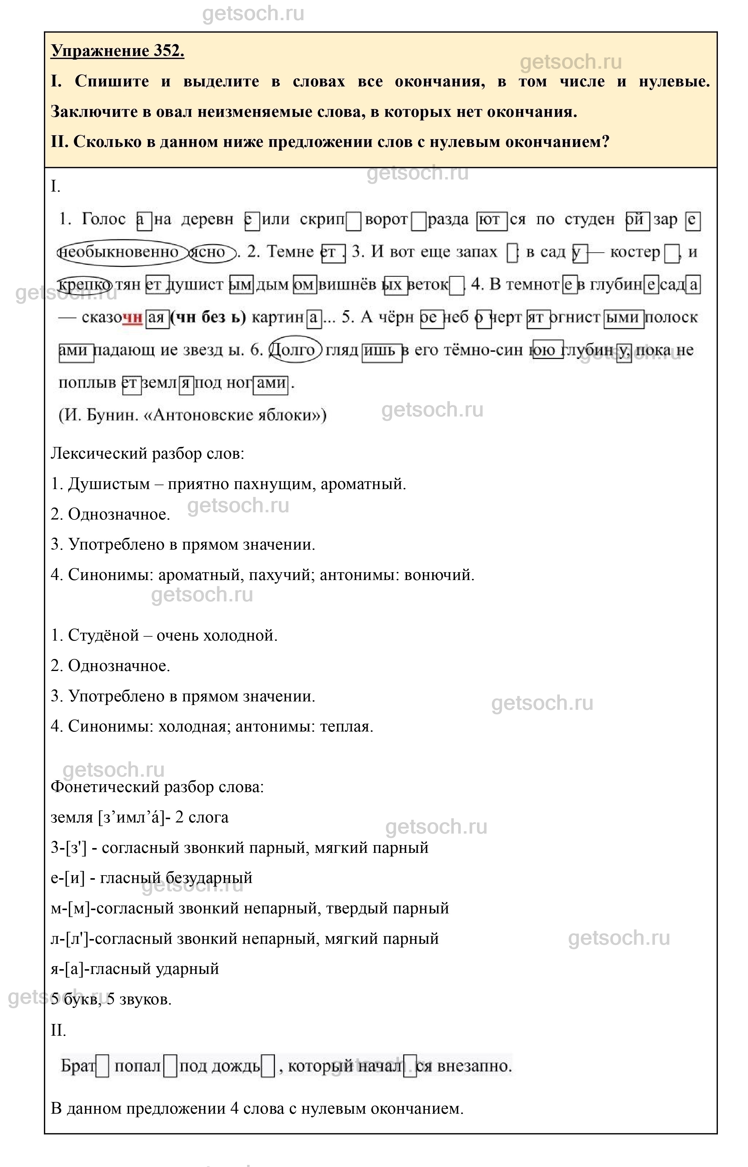 Рассмотрим ответы на Упражнение 352 из учебника по русскому языку для 5 класса Ладыженской
