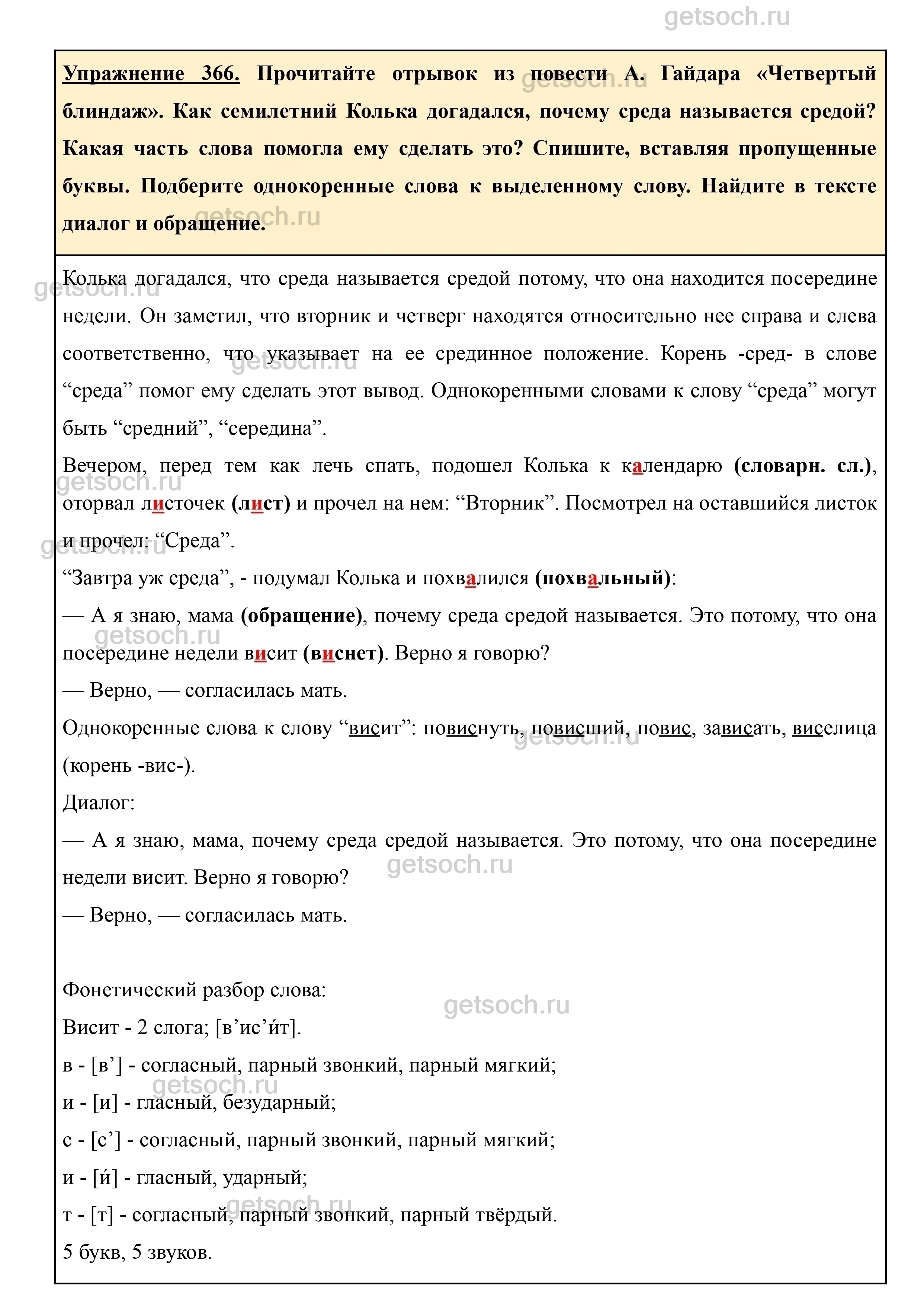Рассмотрим ответы на Упражнение 366 из учебника по русскому языку для 5 класса Ладыженская