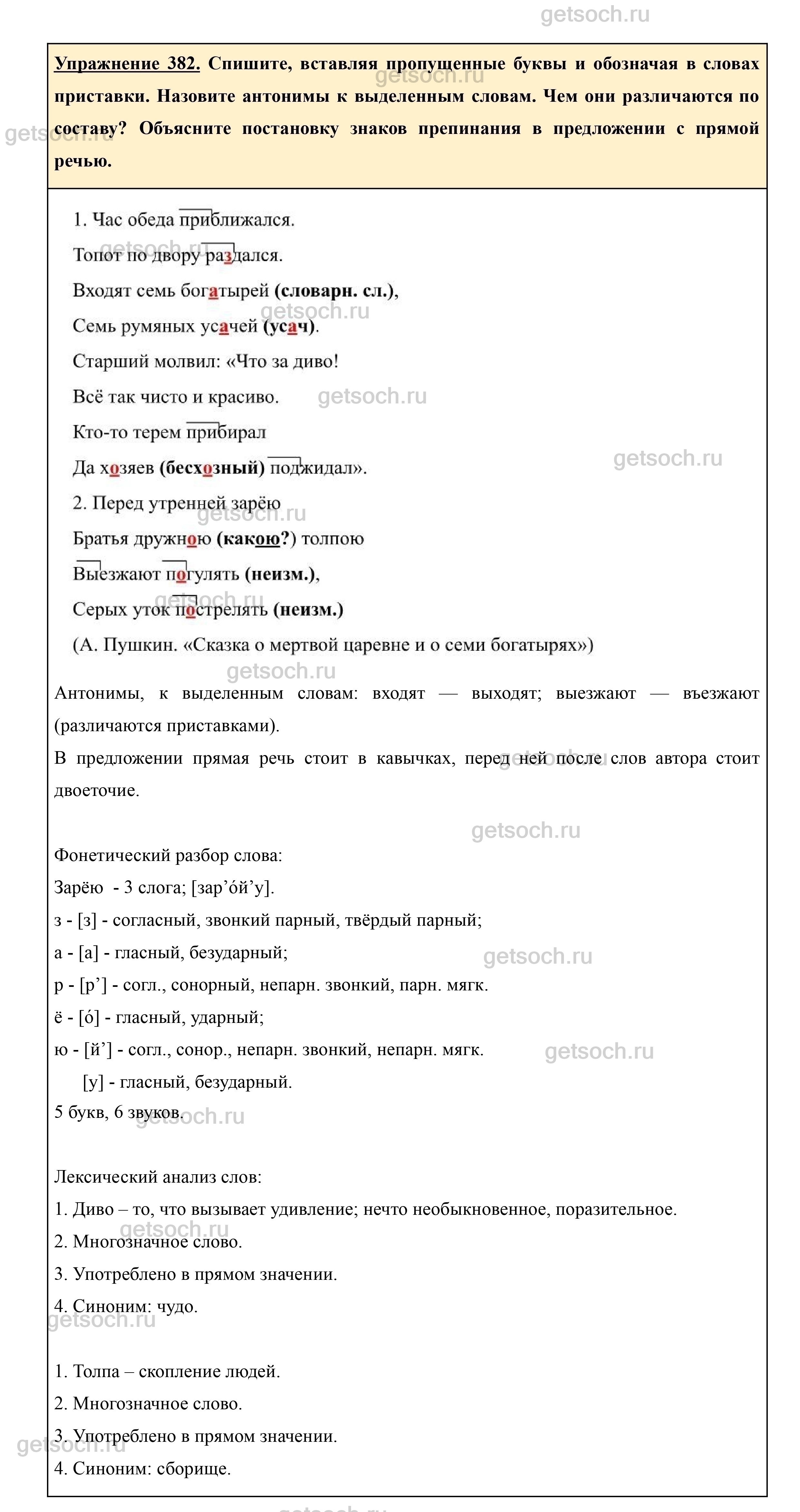 Рассмотрим ответы на Упражнение 382 из учебника по русскому языку для 5 класса Ладыженской