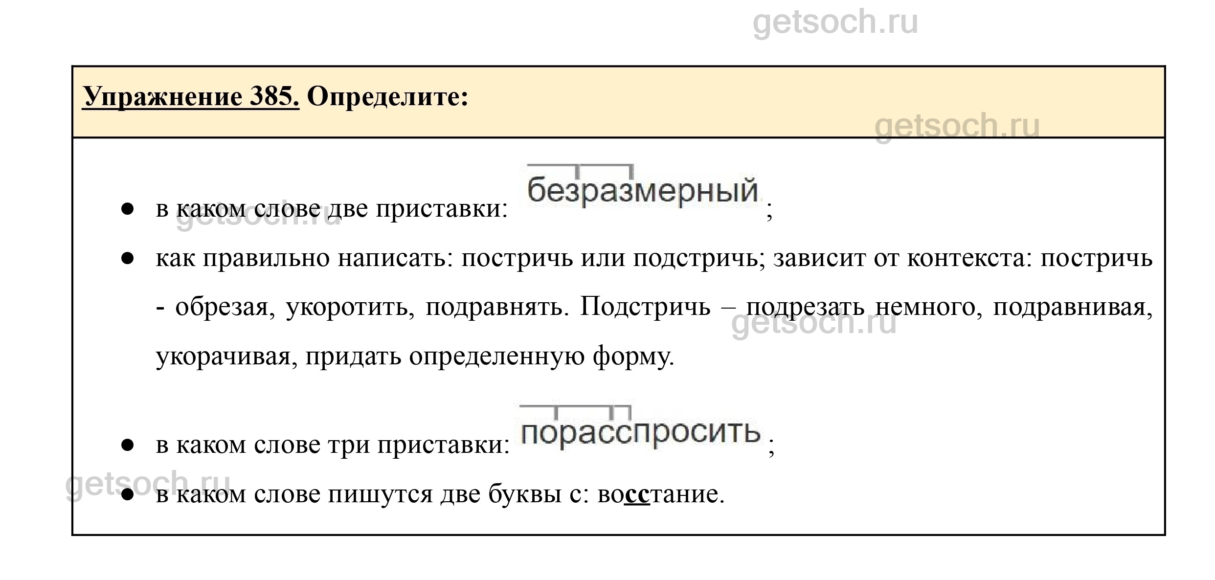 Рассмотрим ответы на Упражнение 385 из учебника по русскому языку для 5 класса Ладыженской