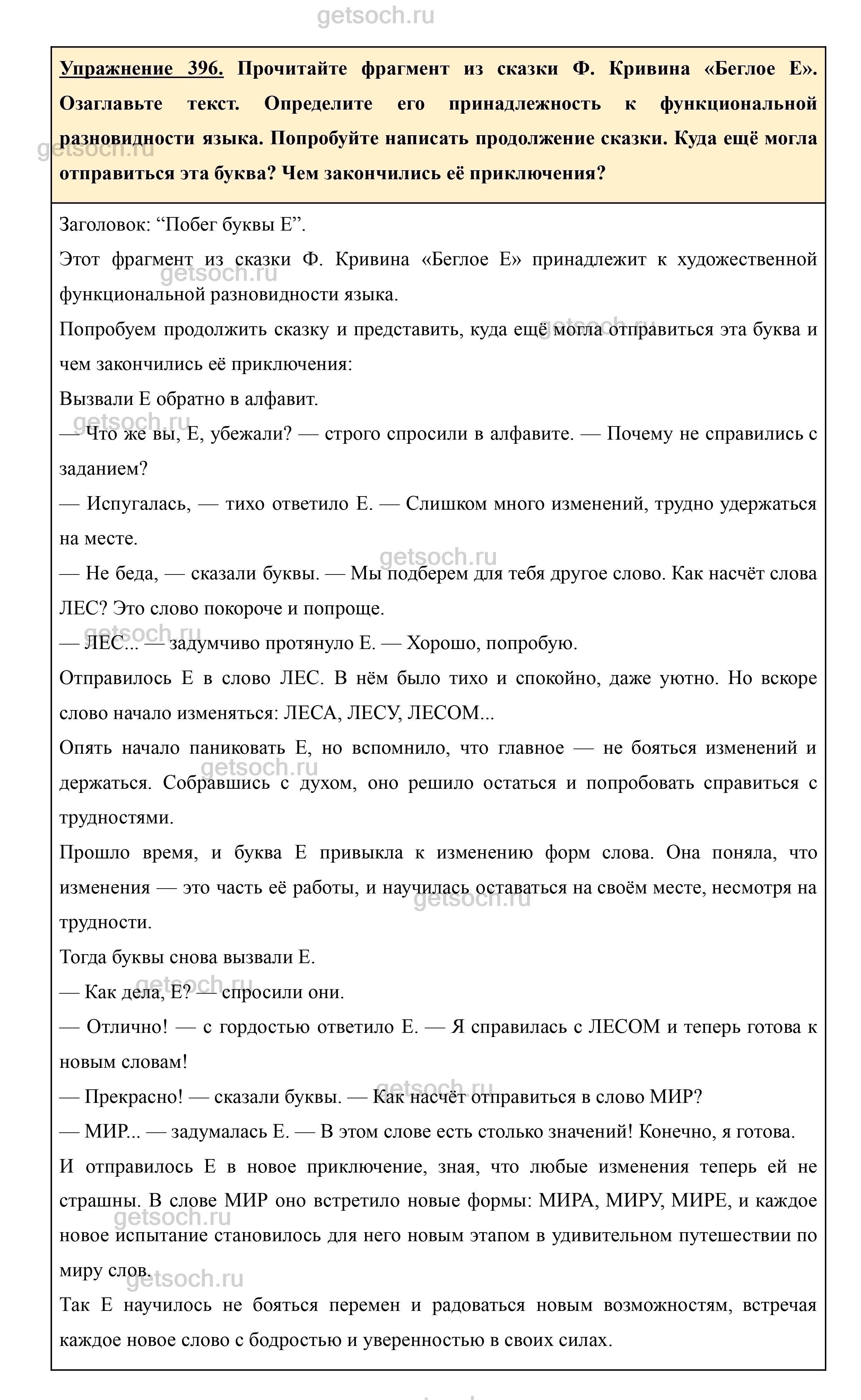 Рассмотрим ответы на Упражнение 396 из учебника по русскому языку для 5 класса Ладыженской