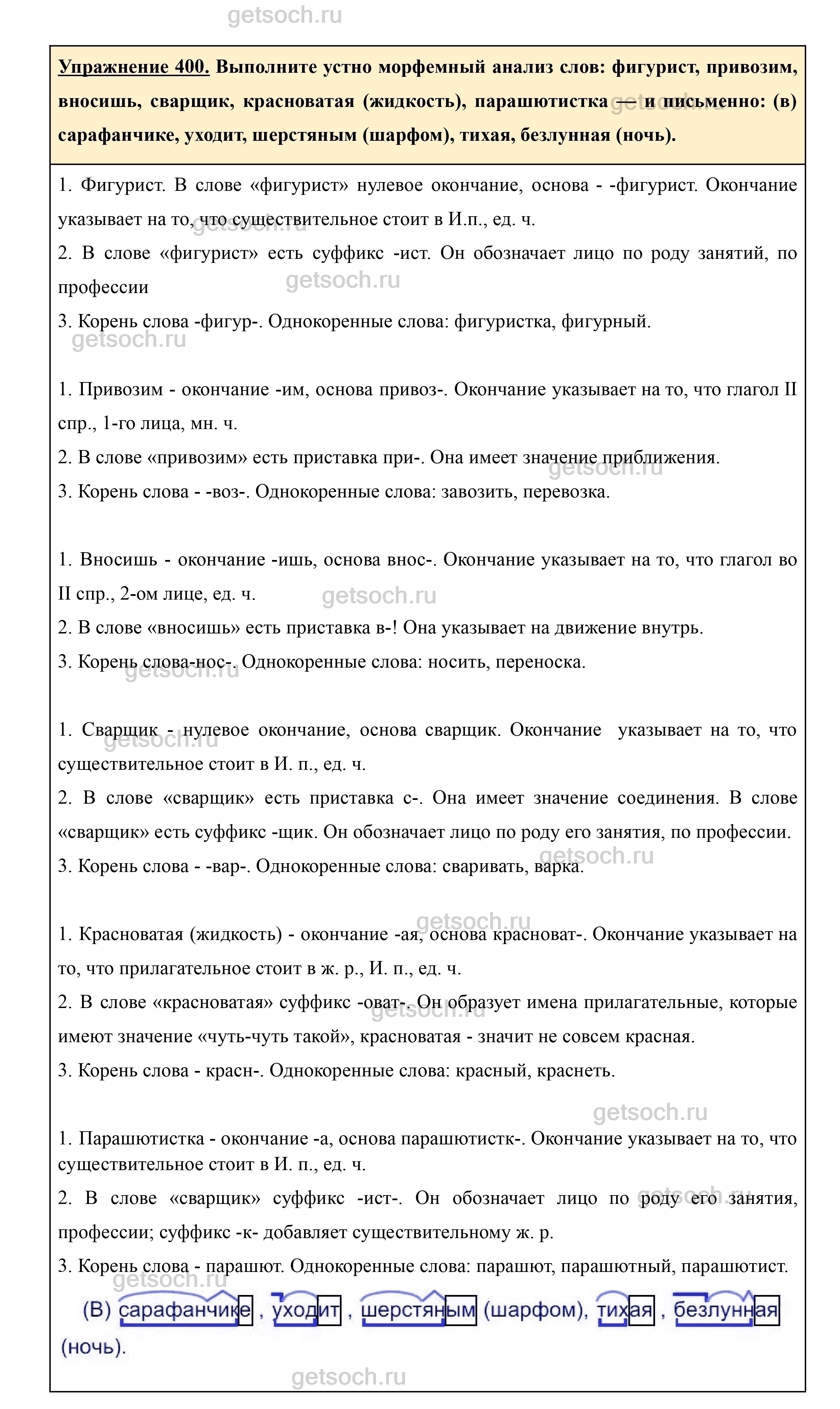 Рассмотрим ответы на Упражнение 400 из учебника по русскому языку для 5 класса Ладыженской