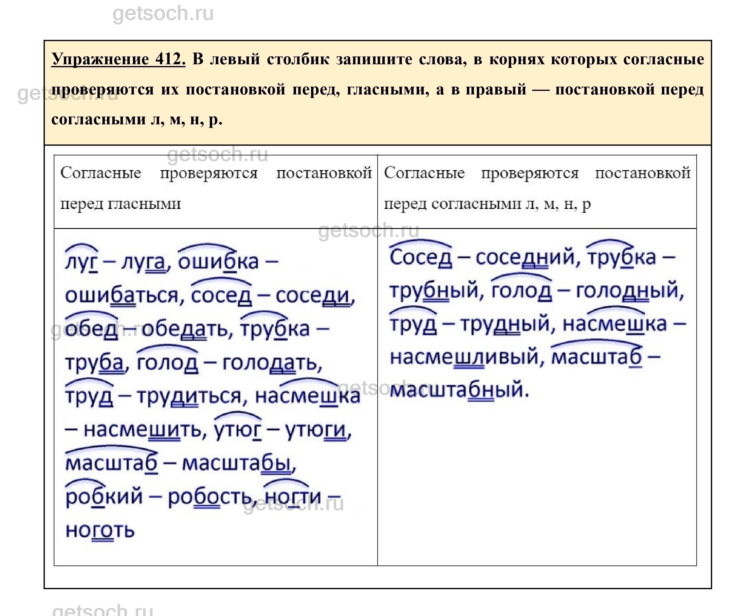 Рассмотрим ответы на Упражнение 412 из учебника по русскому языку для 5 класса Ладыженской
