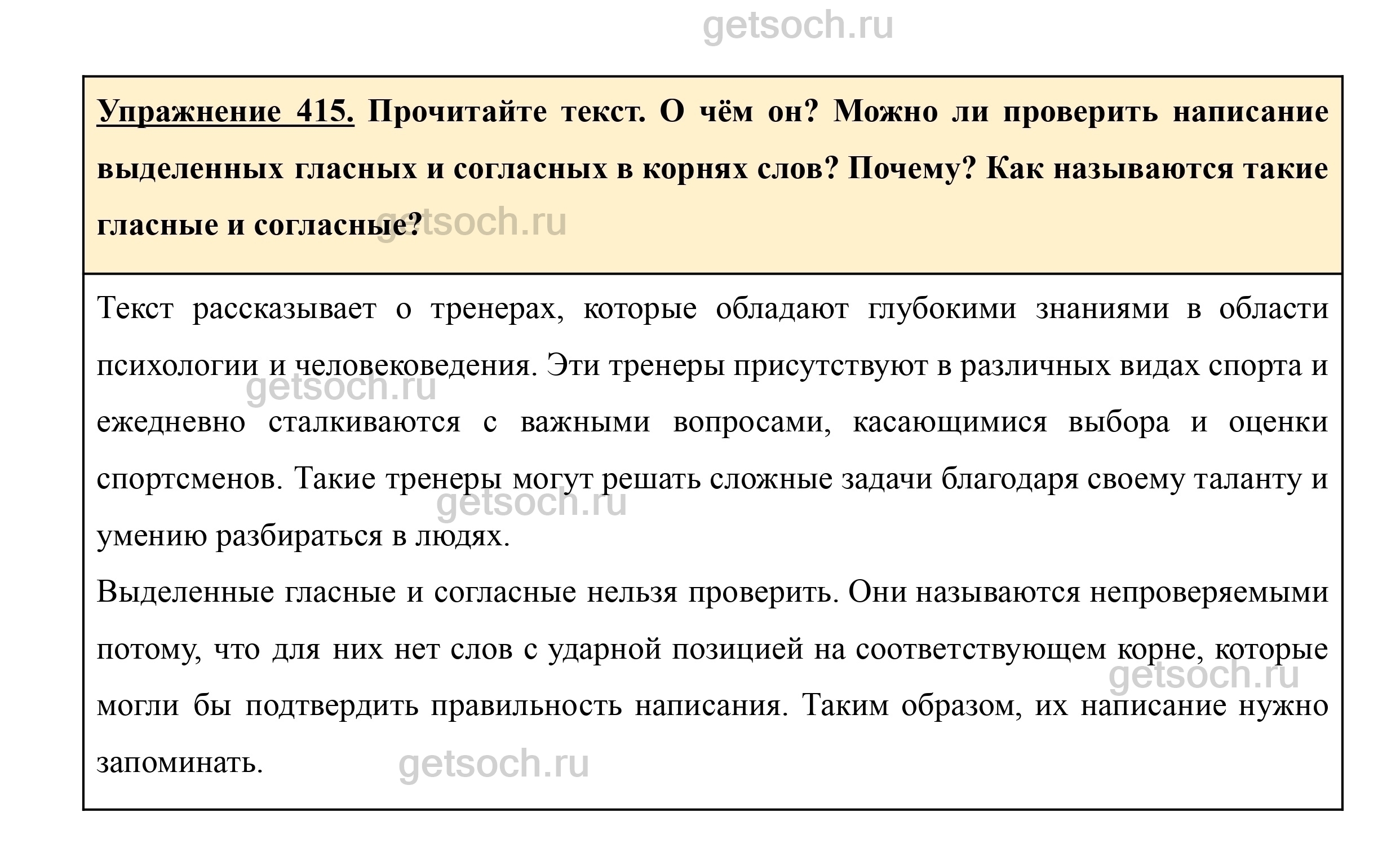 Рассмотрим ответы на Упражнение 415 из учебника по русскому языку для 5 класса Ладыженской