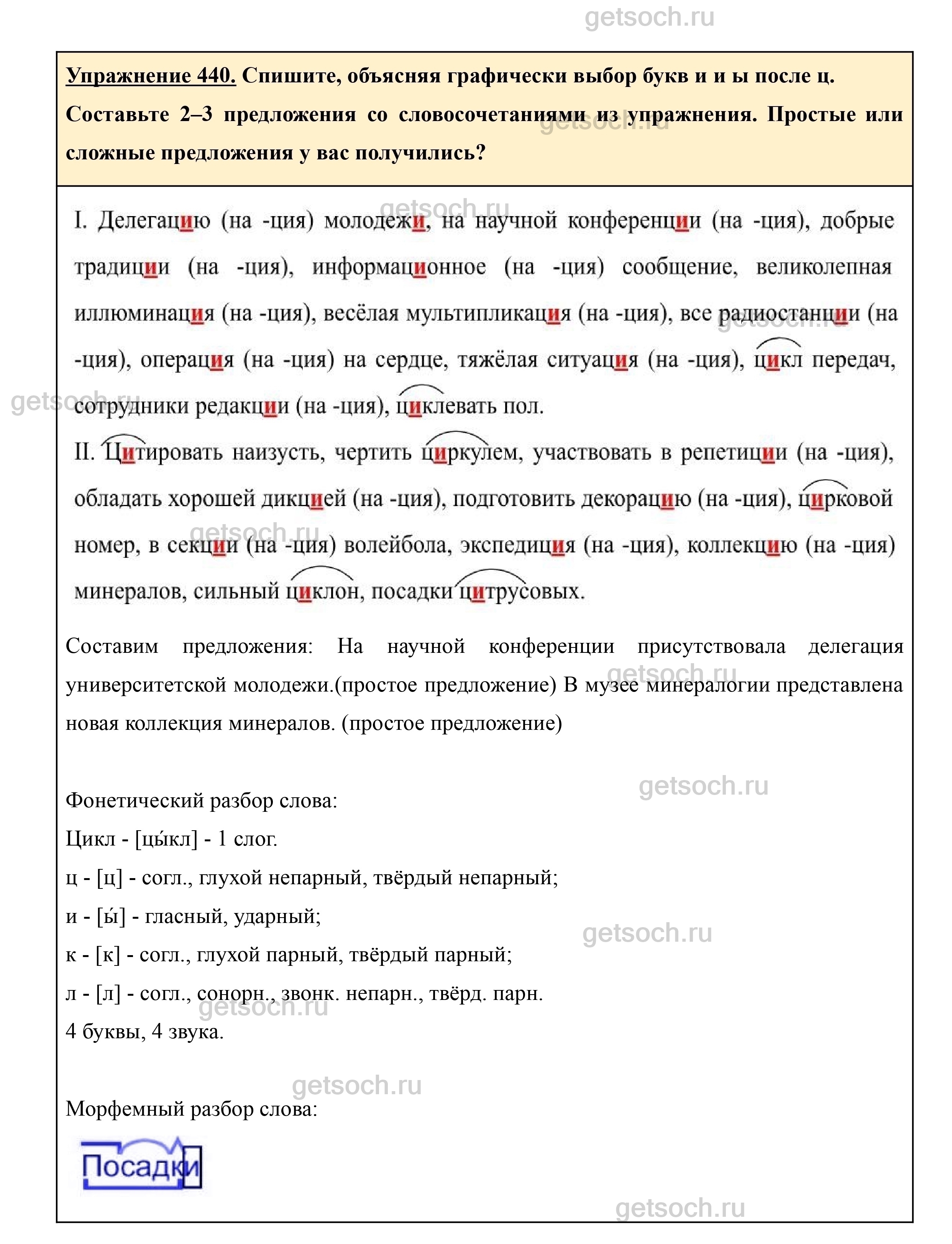 Рассмотрим ответы на Упражнение 440 из учебника по русскому языку для 5 класса Ладыженской