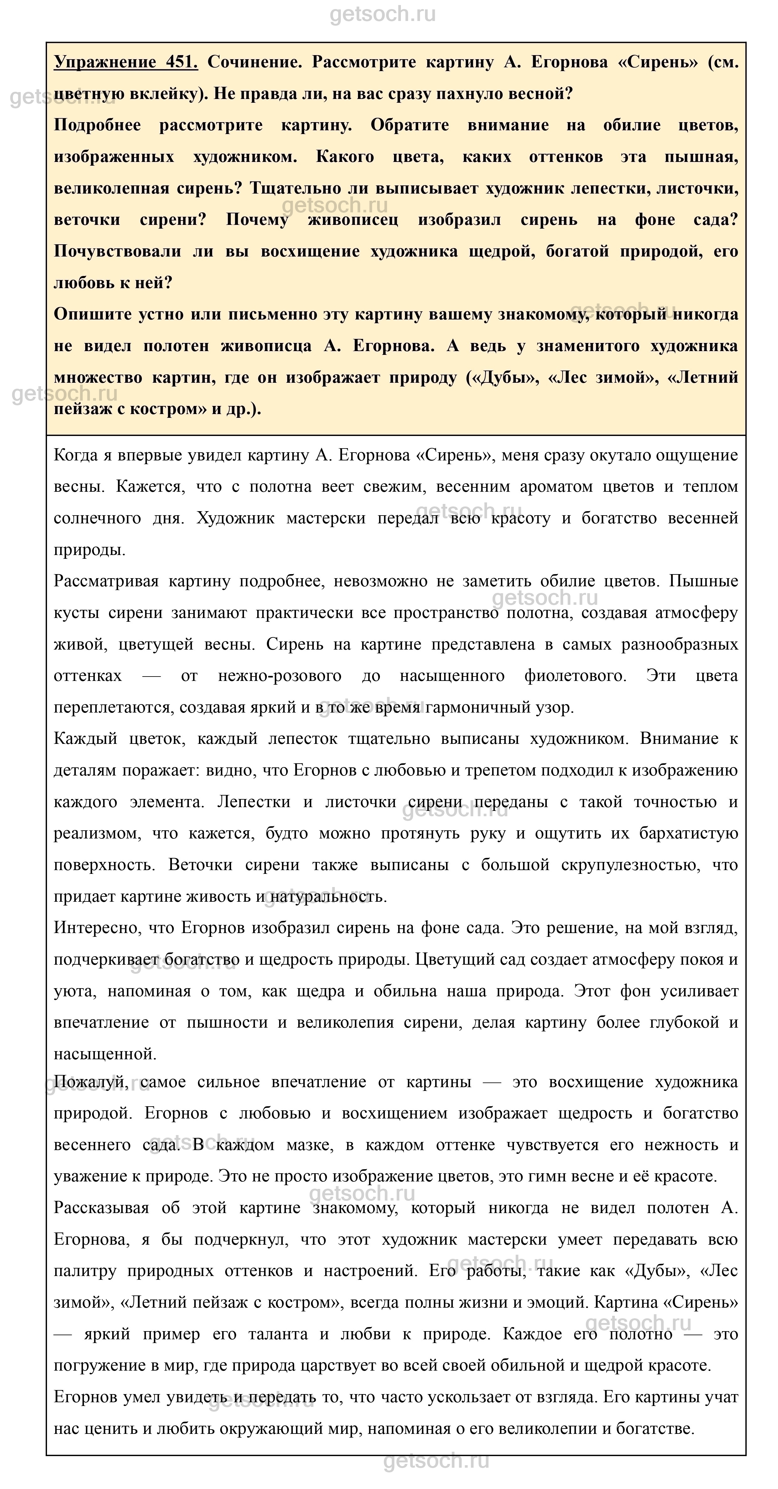 Рассмотрим ответы на Упражнение 451 из учебника по русскому языку для 5 класса Ладыженской