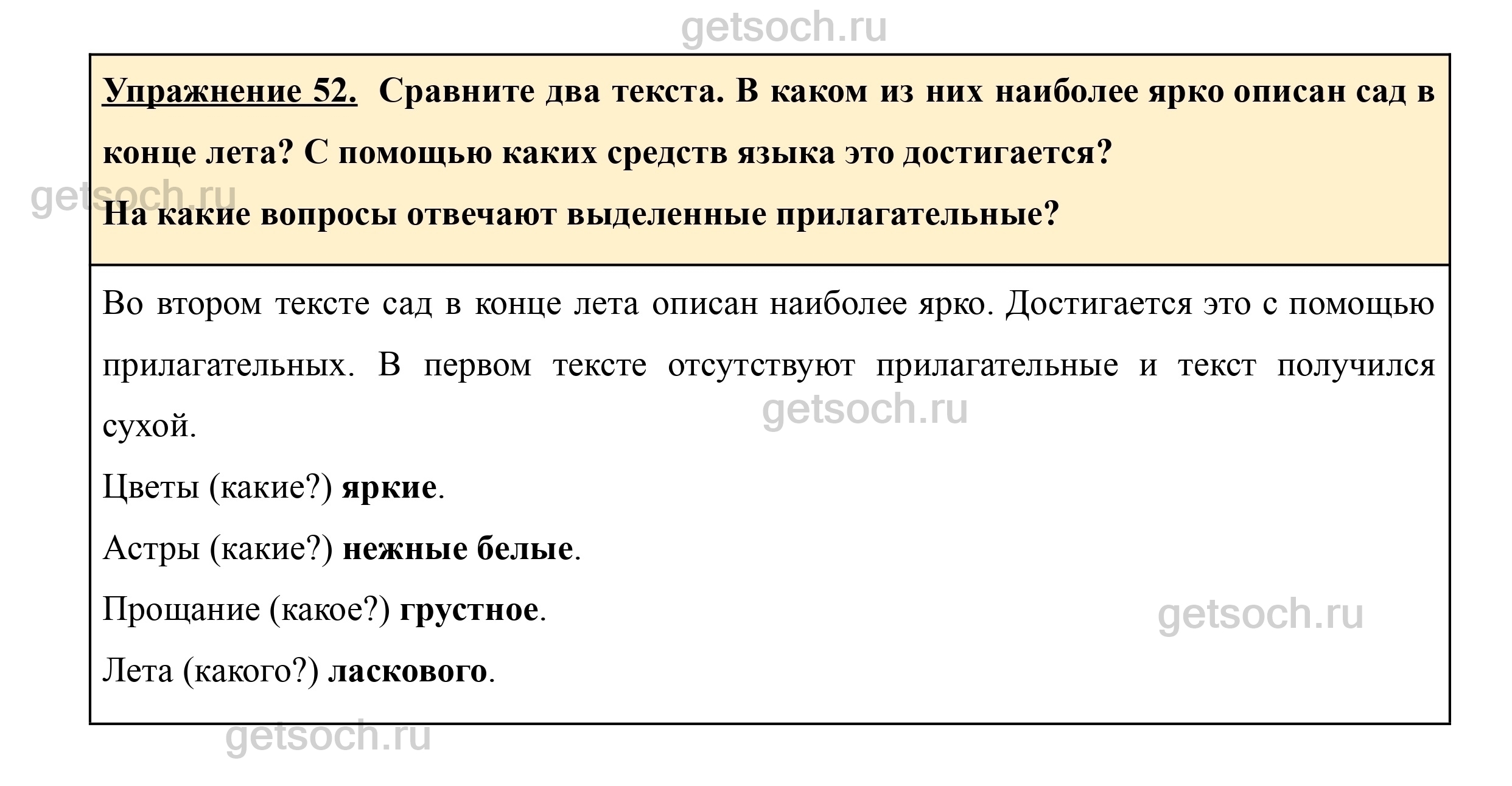 Рассмотрим ответы на Упражнение 52 из учебника по русскому языку для 5 класса Ладыженской