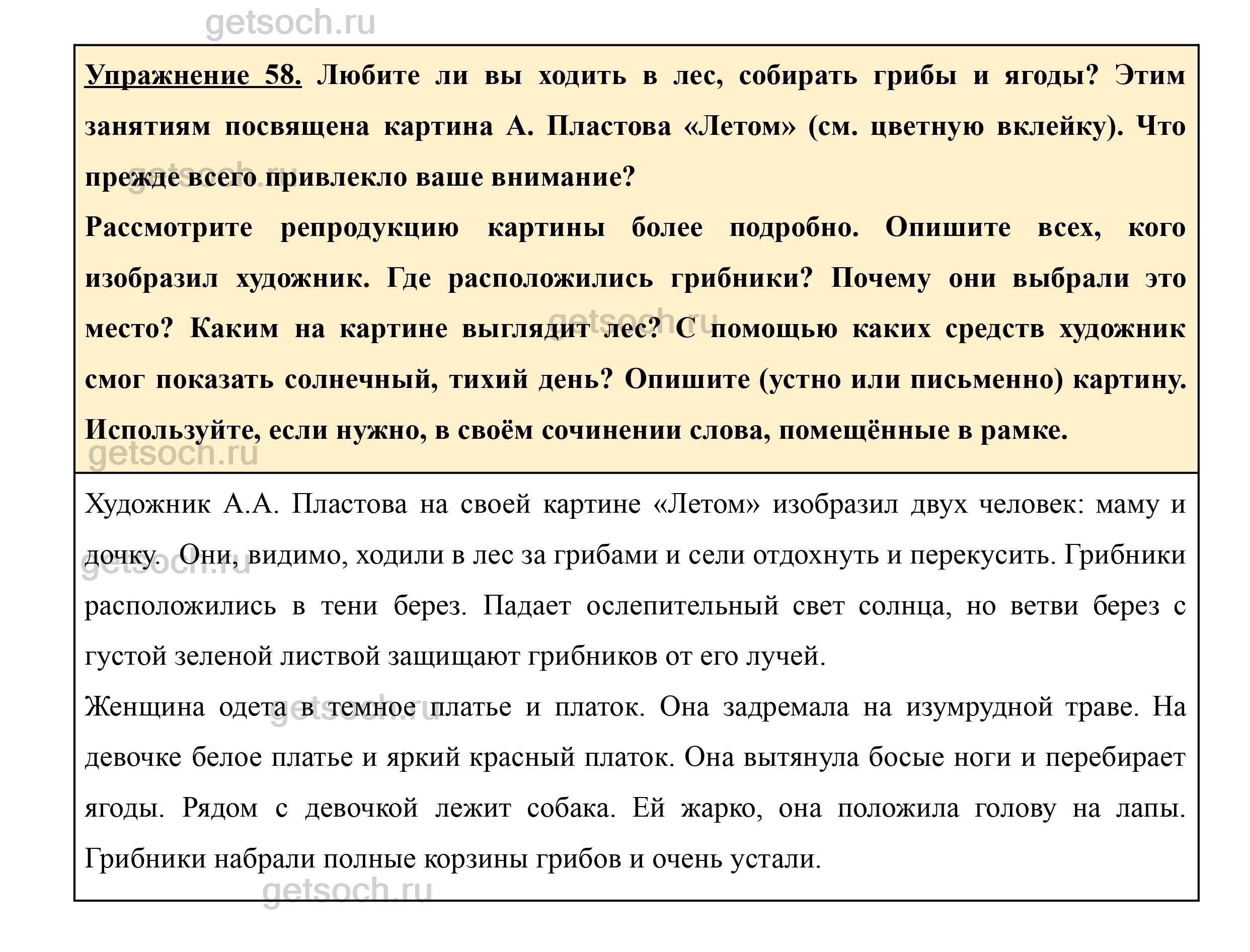 Рассмотрим ответы на Упражнение 58 из учебника по русскому языку для 5 класса Ладыженской