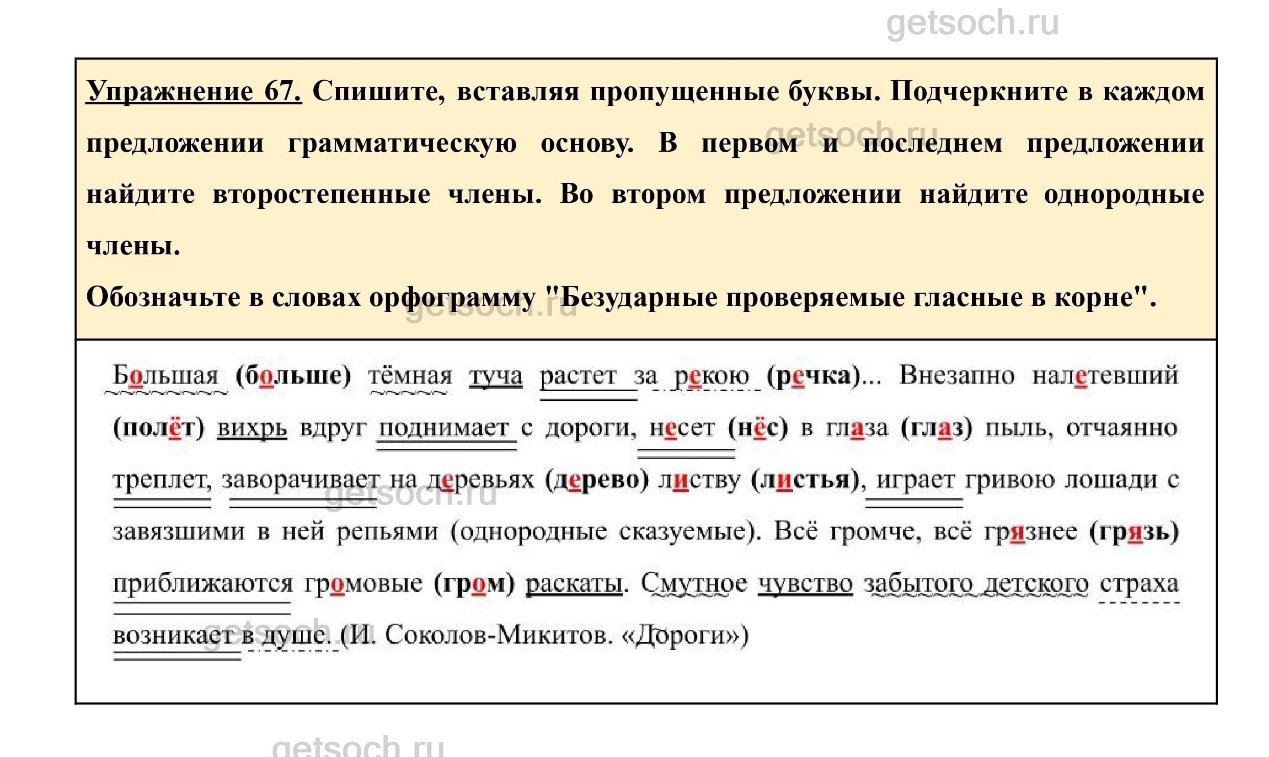 Рассмотрим ответы на Упражнение 67 из учебника по русскому языку для 5 класса Ладыженской