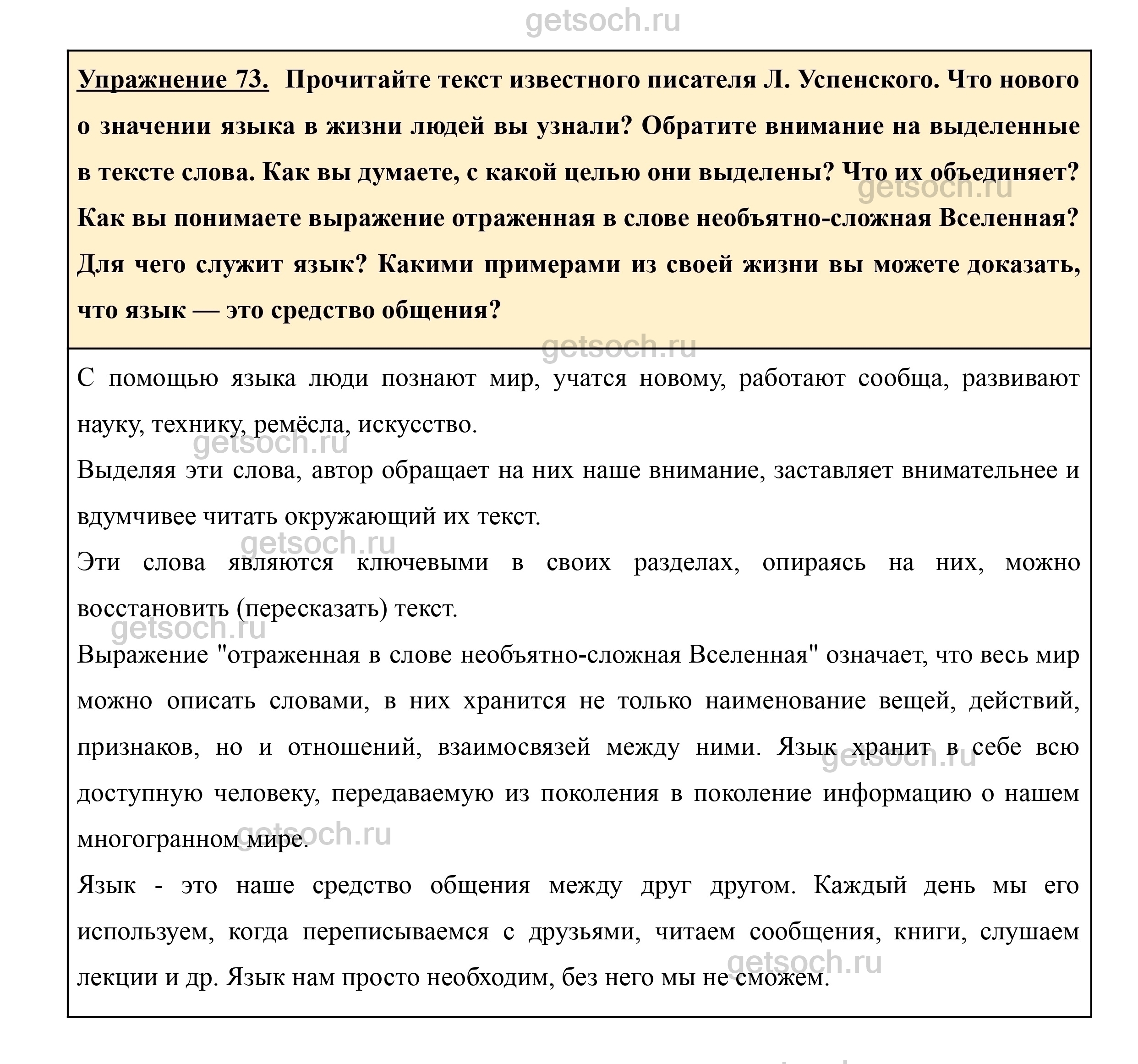 Рассмотрим ответы на Упражнение 73 из учебника по русскому языку для 5 класса Ладыженской