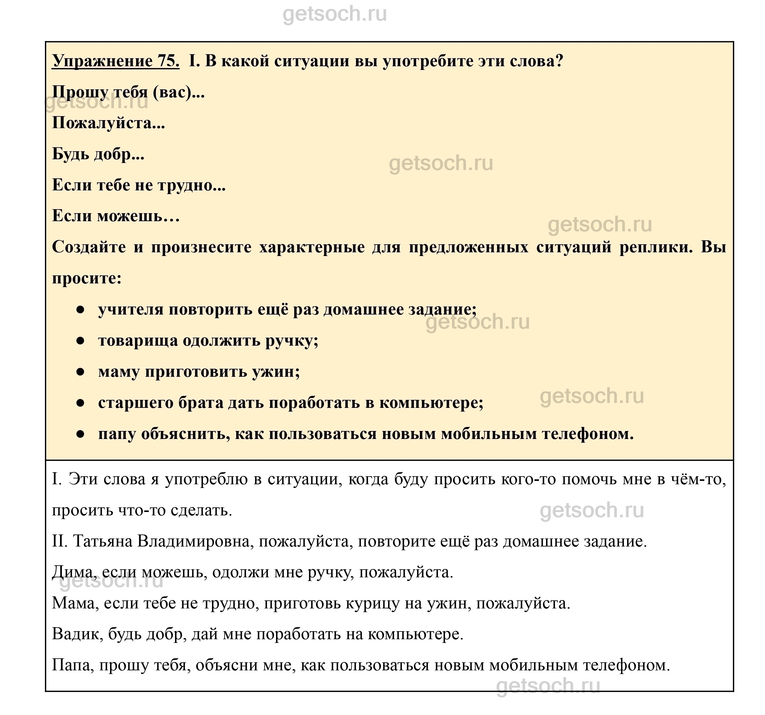 Рассмотрим ответы на Упражнение 75 из учебника по русскому языку для 5 класса Ладыженской