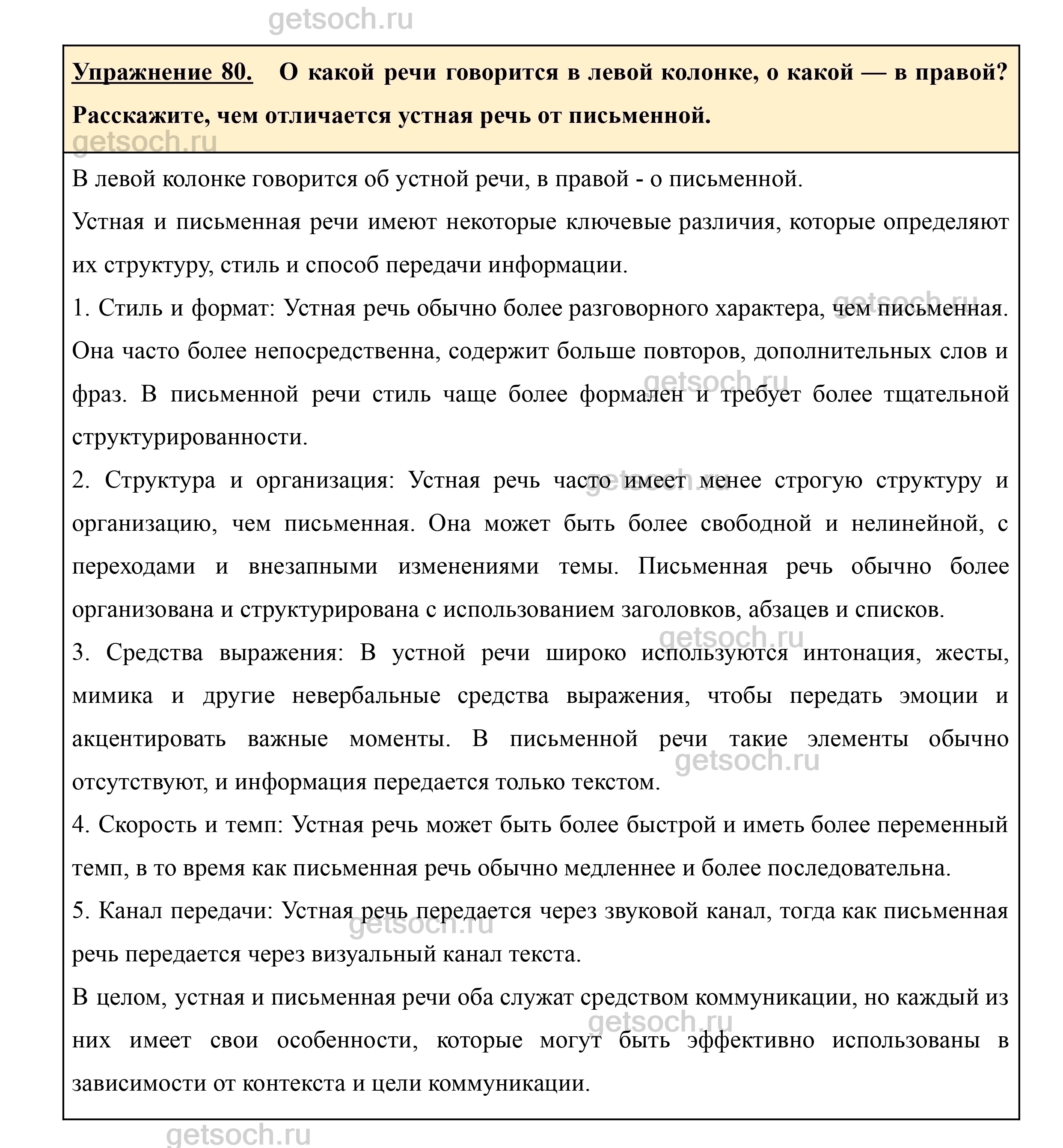 Рассмотрим ответы на Упражнение 80 из учебника по русскому языку для 5 класса Ладыженской