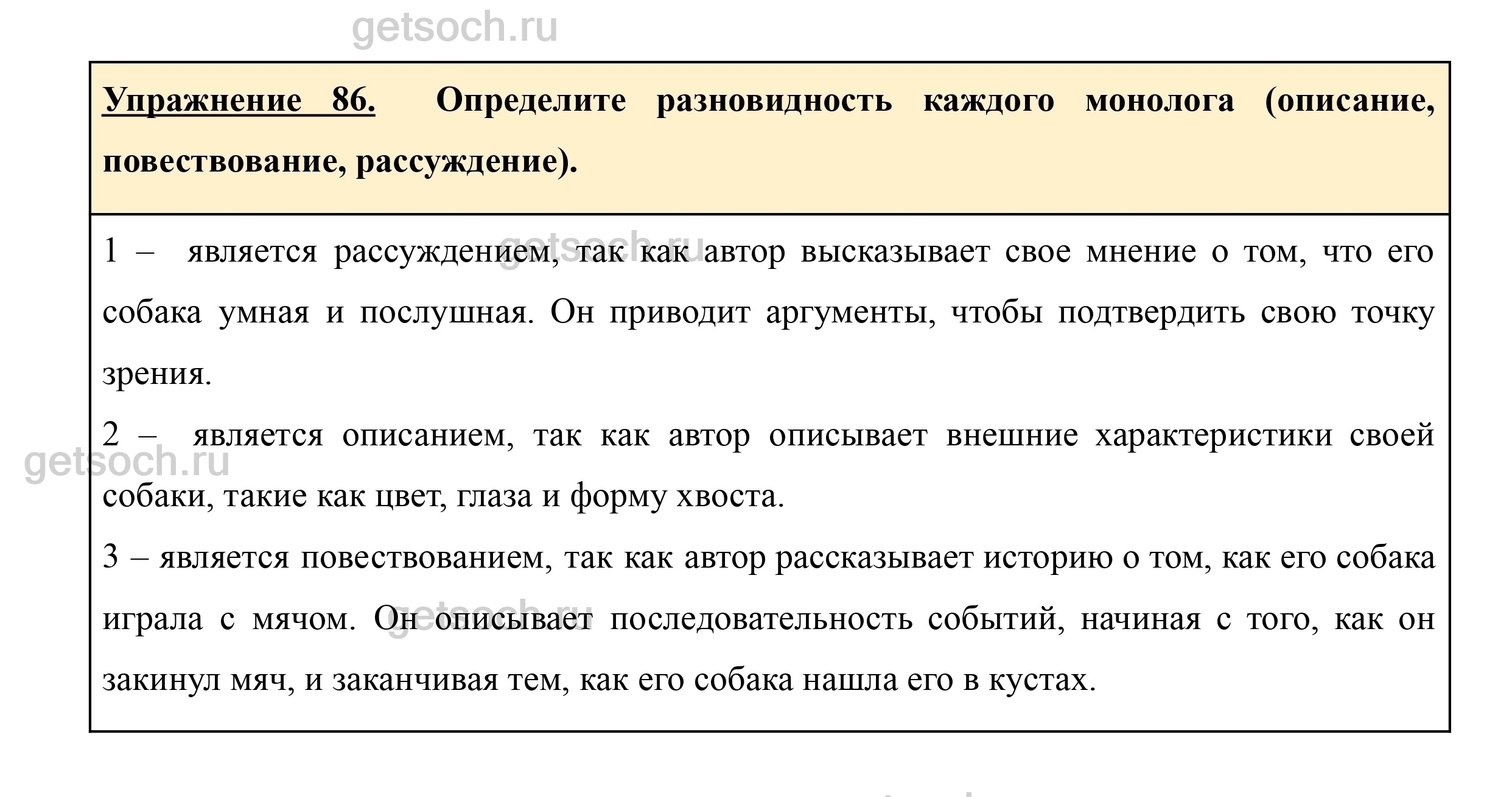 Рассмотрим ответы на Упражнение 86 из учебника по русскому языку для 5 класса Ладыженской