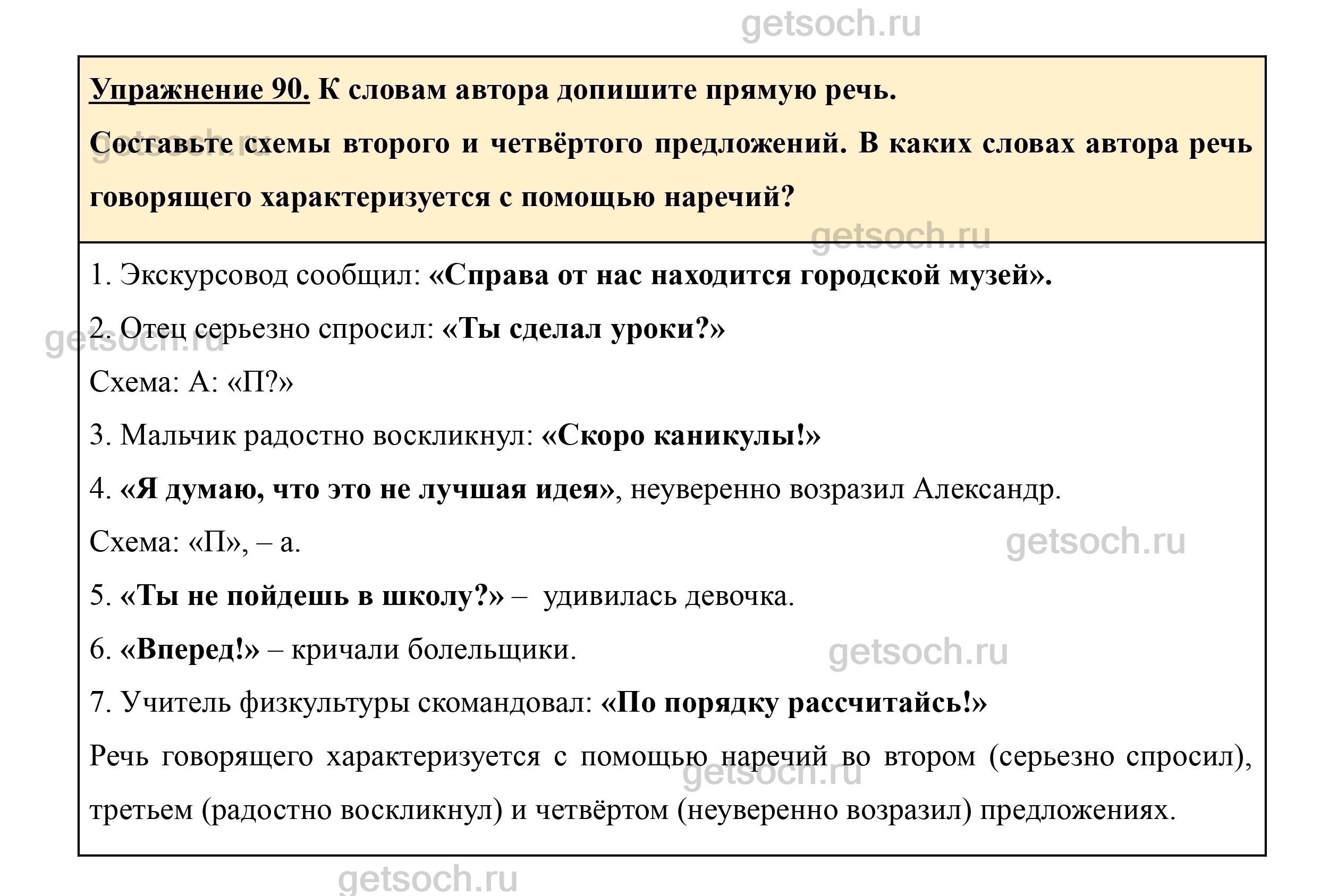 Рассмотрим ответы на Упражнение 90 из учебника по русскому языку для 5 класса Ладыженской