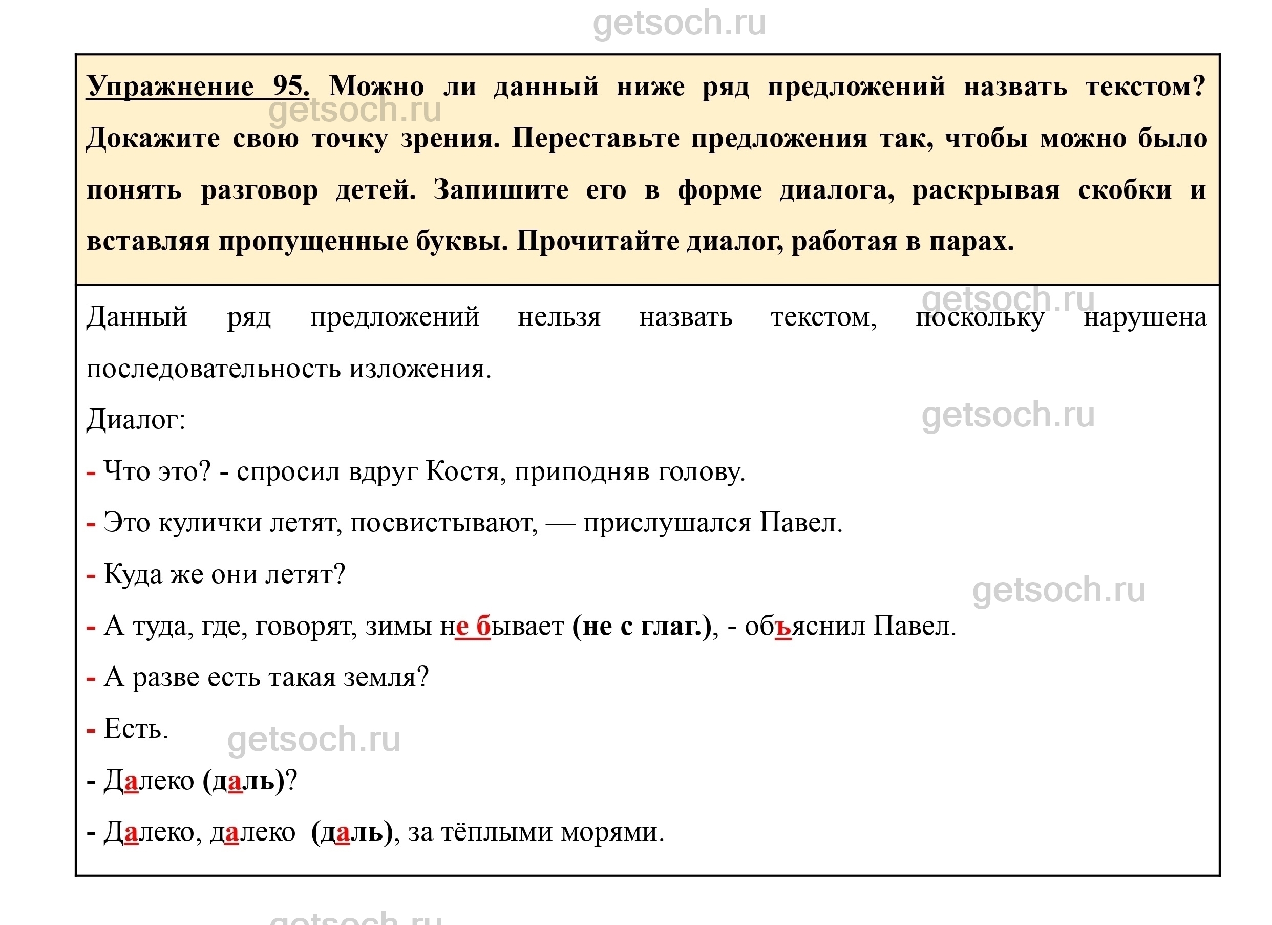 Рассмотрим ответы на Упражнение 95 из учебника по русскому языку для 5 класса Ладыженской