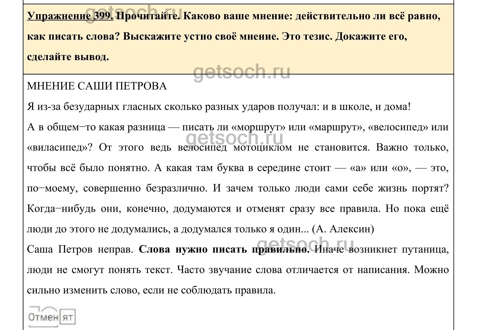 Рассмотрим ответы на Упражнение 399 из учебника по русскому языку для 5 класса Ладыженская