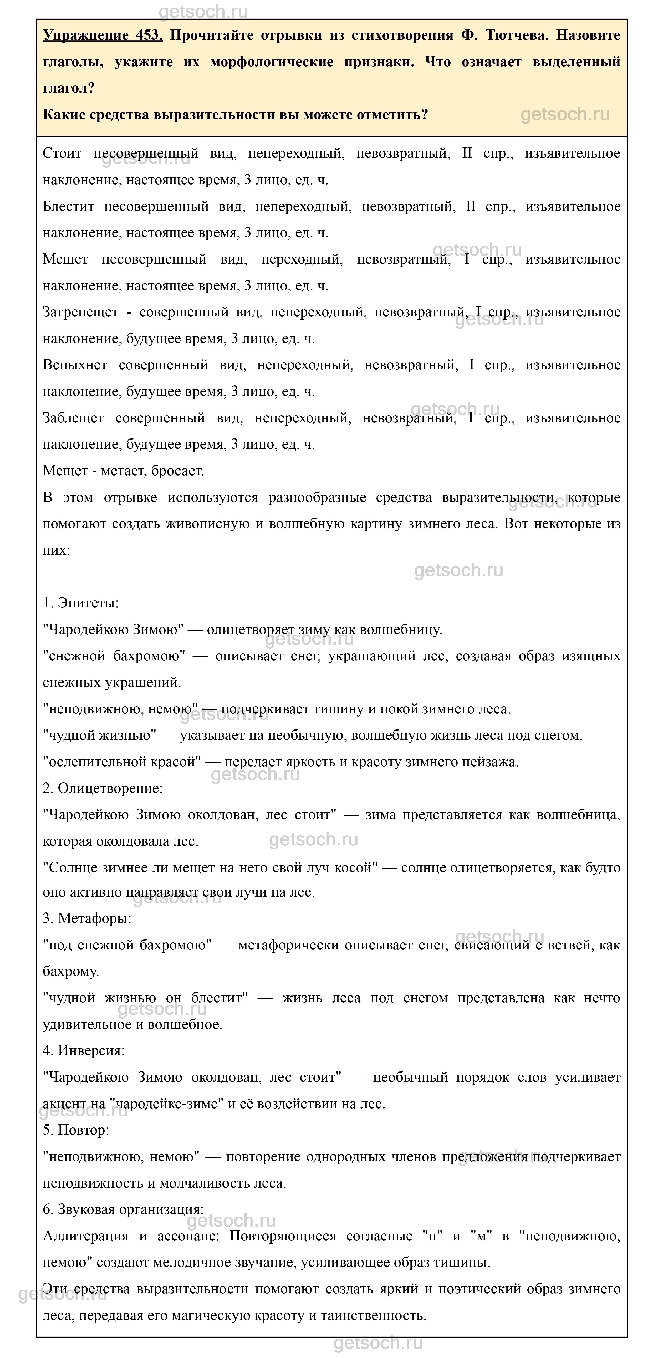 Рассмотрим ответы на Упражнение 453 из учебника по русскому языку для 5 класса Ладыженская