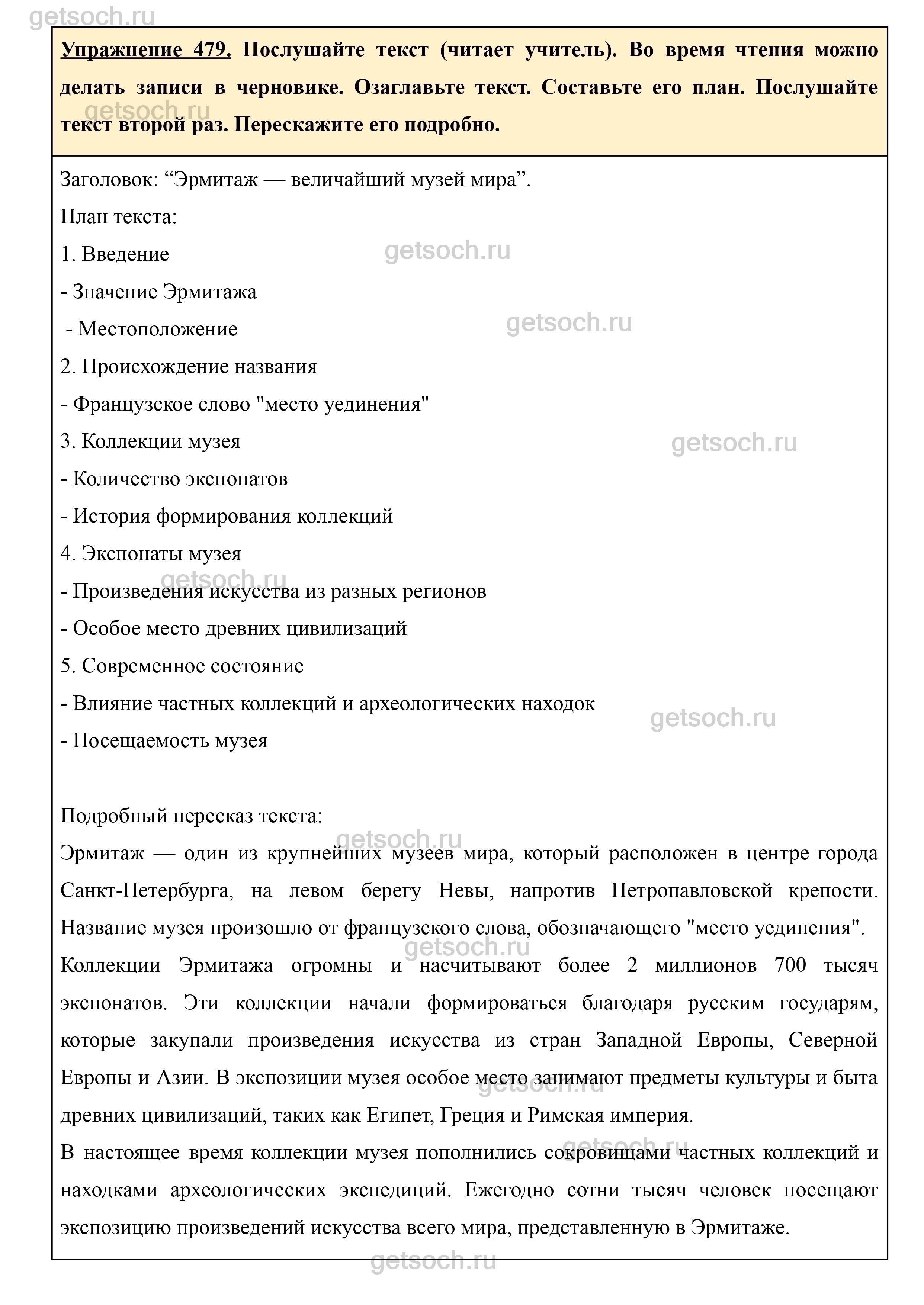 Рассмотрим ответы на Упражнение 479 из учебника по русскому языку для 5 класса Ладыженская
