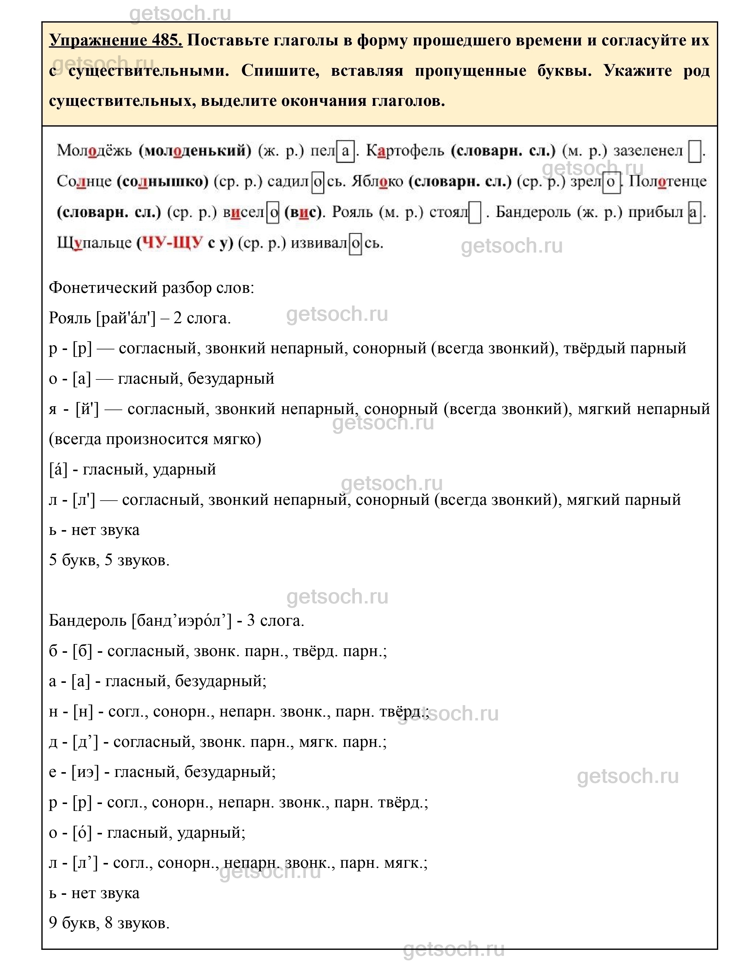 Рассмотрим ответы на Упражнение 485 из учебника по русскому языку для 5 класса Ладыженская