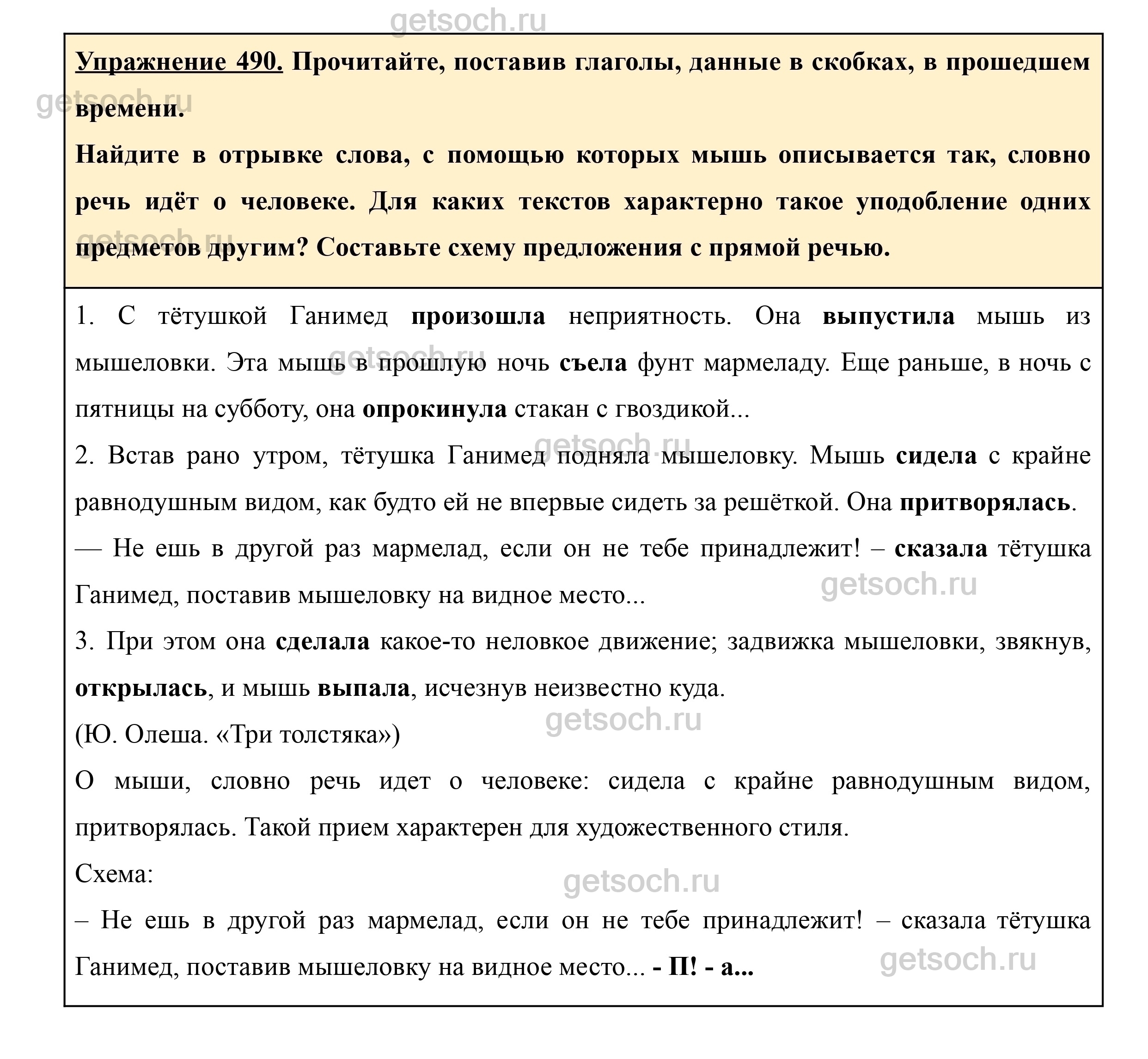 Рассмотрим ответы на Упражнение 490 из учебника по русскому языку для 5 класса Ладыженская