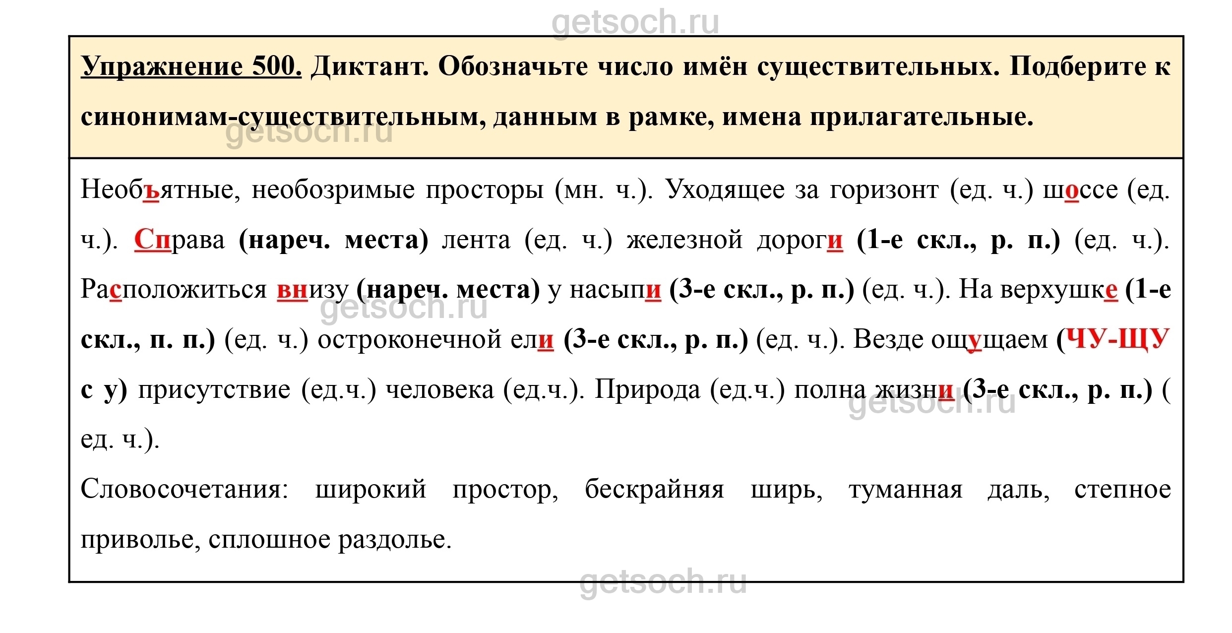 Рассмотрим ответы на Упражнение 500 из учебника по русскому языку для 5 класса Ладыженская
