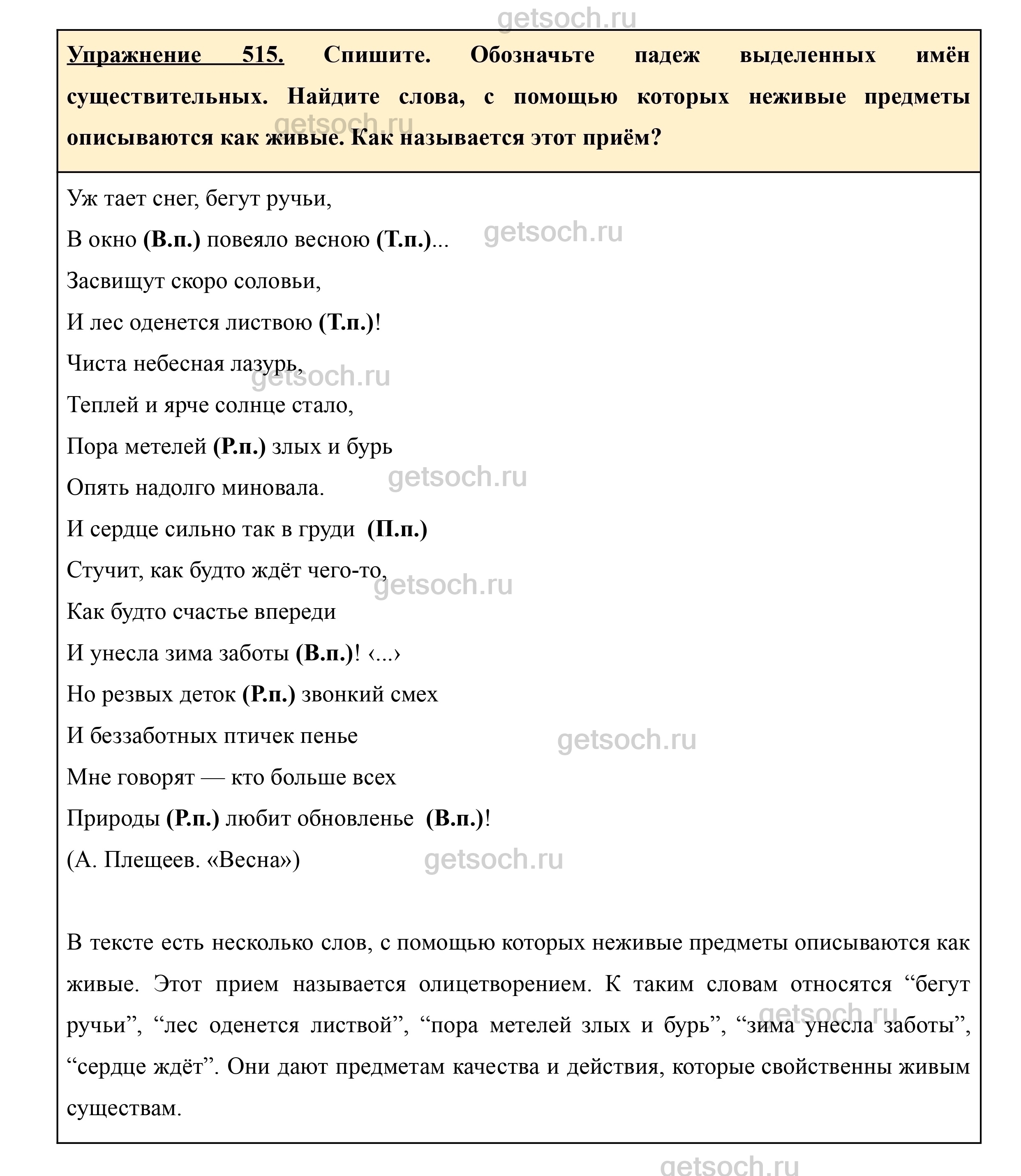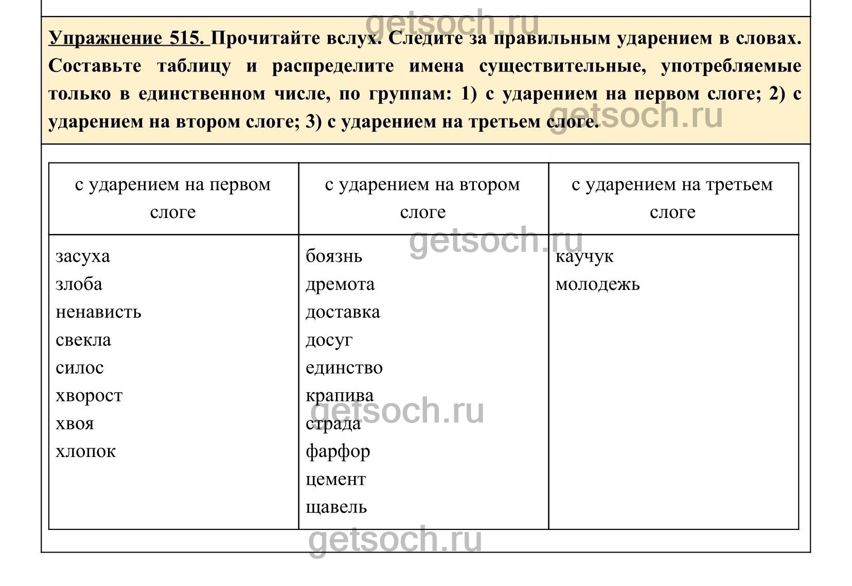 Рассмотрим ответы на Упражнение 515 из учебника по русскому языку для 5 класса Ладыженская